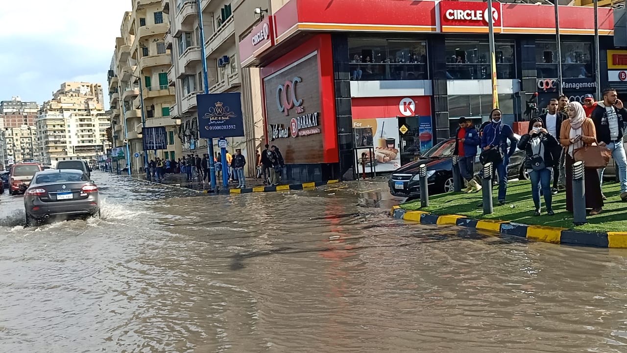 على مدار ساعة ونصف، تعرضت الإسكندرية صباح اليوم لهطول أمطار غزيرة تسببت في غرق عدد كبير من الشوارع الرئيسية، ومن بينهما طريق الكورنيش.