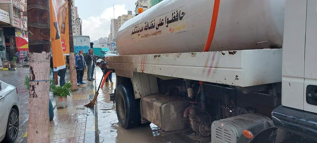 الوحدات المحلية تدفع بمعداتها لشفط مياه الأمطار بالبحيرة | صور