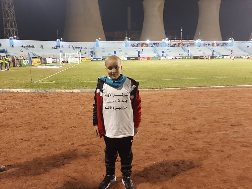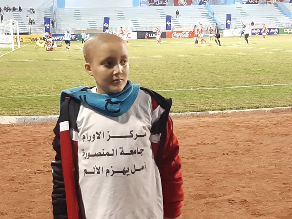 دعما لمركز أورام المنصورة.. أحد محاربي السرطان يحضر مباراة الأهلي وغزل المحلة