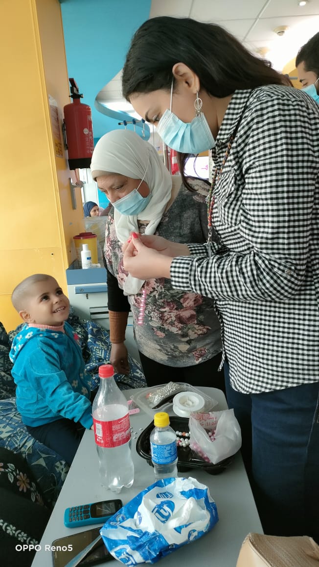 وتم تنفيذ عددا من الورش الفنية والترفيهية، منها ورشة عمل حظاظة من الخرز اللولي الأبيض والملون، وورشة رسم بالألوان الخشب بعنوان ارسم نفسك، وعمل كروت بعنوان أتمني أكون، وسجل فيها كل طفل طموحاته وأمنياته في المستقبل.