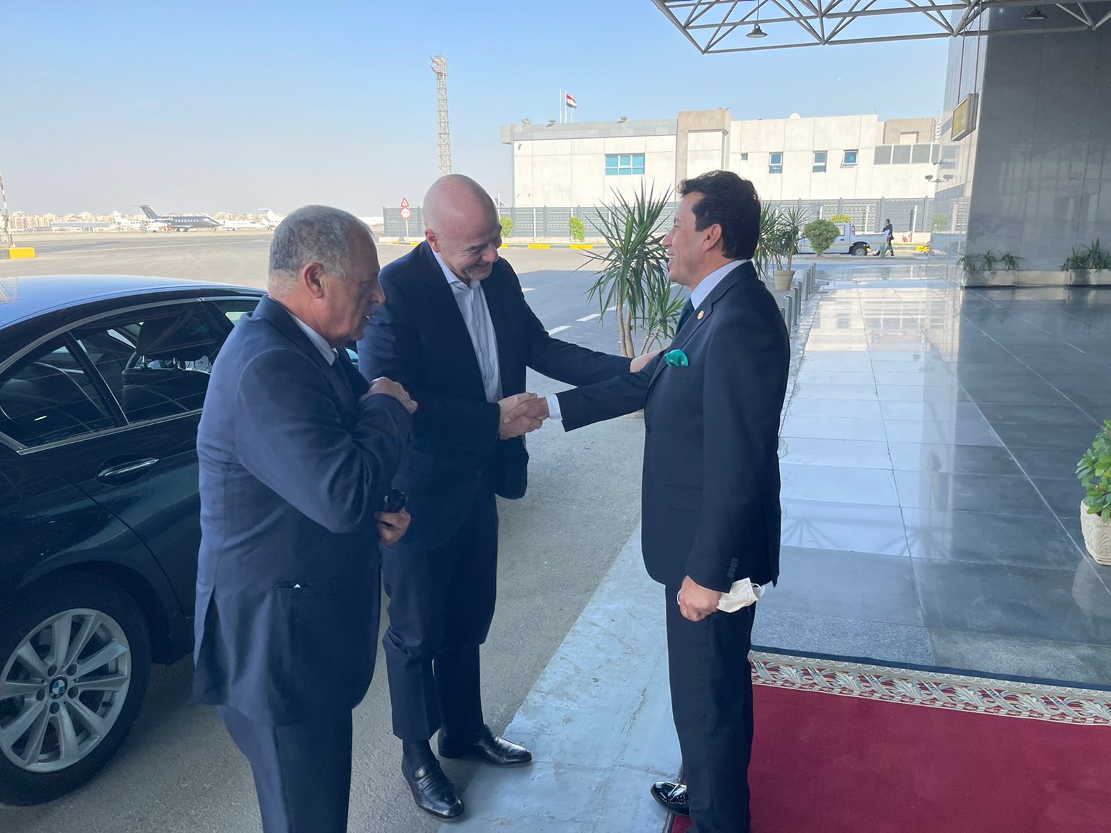 وزير الرياضة يستقبل رئيس فيفا بمطار القاهرة الدولي