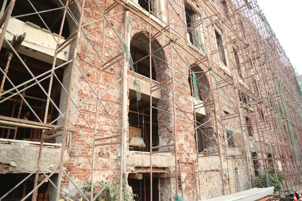 خلال التفقد استمعت وزيرة الثقافة لشرح مراحل الترميم المتعددة للمبنى من المهندس المسئول بالشركة المنفذة، والذي أوضح أن المرحلة الإنشائية الحالية شملت العديد من الأعمال منها تدعيم الحوائط الخارجية وإزالة بعض الحوائط والأسقف الداخلية المتهالكة وإعادة إنشائها، وإزالة البلكون وإعادة زاوية الميل لتحقيق زاوية رؤية أفضل، وإزالة الردم، وإيجاد مساحات تحت مدرج الجمهور لاستخدامه لخدمات المخازن وخدمات الكهرباء، وإعادة سقف الصالة لأصله، وزيادة ارتفاع خشبة المسرح لمواكبة العروض الحديثة.