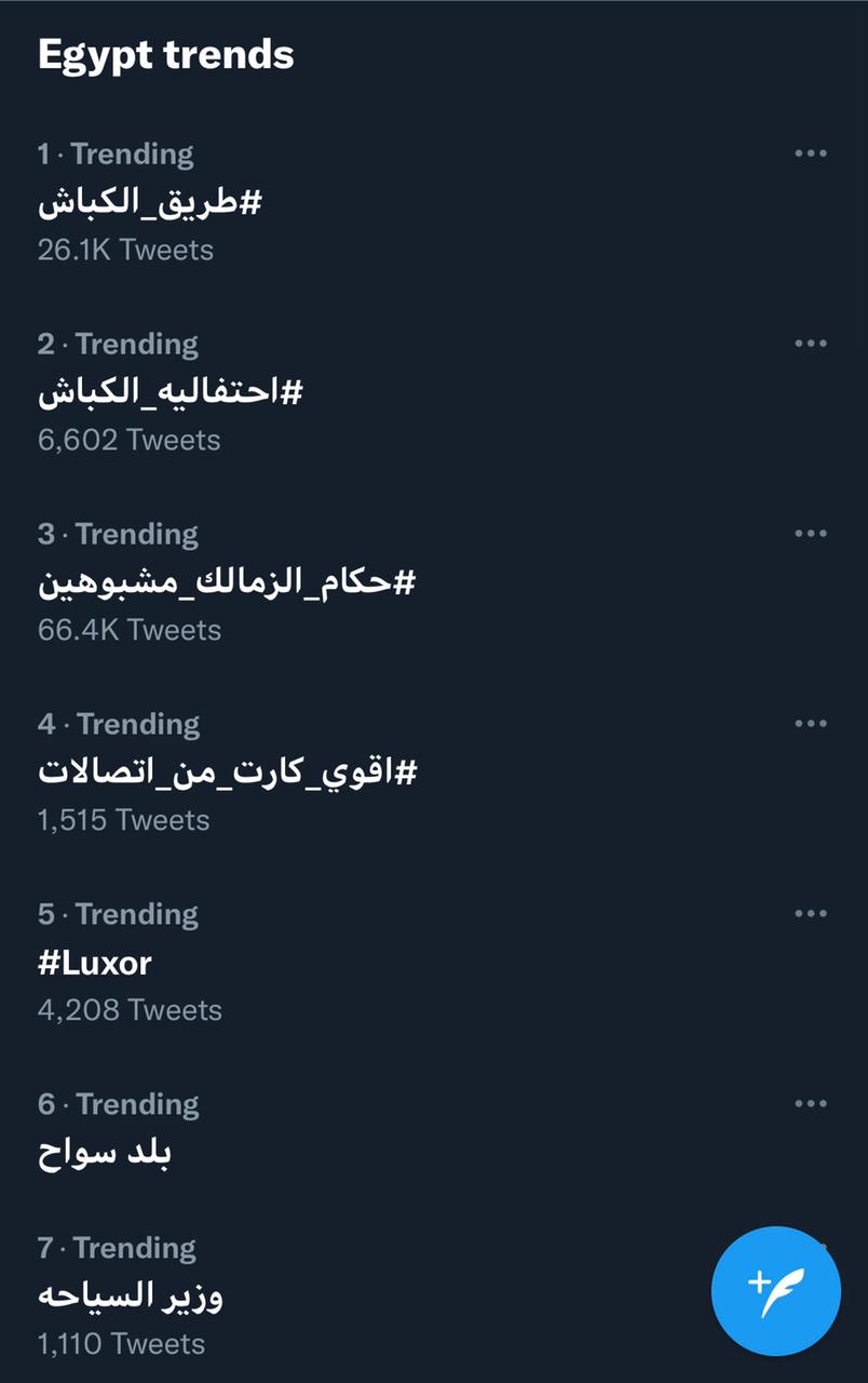 طريق الكباش يتصدر محرك البحث جوجل وتريند تويتر عقب انتهاء حفل الافتتاح العالمي