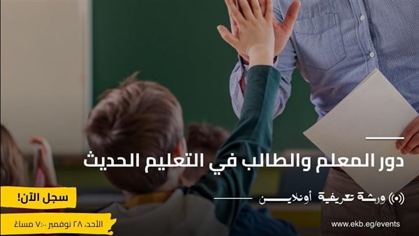 ينظم بنك المعرفة المصري، ورشة عمل بالتنسيق مع دار نهضة مصر، للتعرُّف على مفهوم التعليم الحديث ومميزاته والأدوار الجديدة للمعلم والطالب في ظل التعليم الحديث