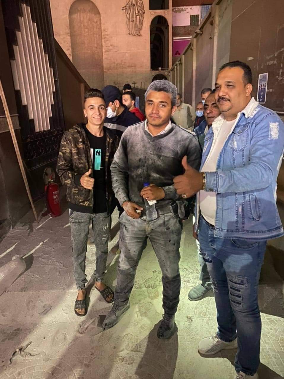 المعاينة أثبتت حدوث ماس كهربائي بلوحة كهرباء صغيرة بسبب زيادة الأحمال، وتدخل ضابط برتبة ملازم أول من قوة تأمين الكنيسة للسيطرة على الحريق مستخدما طفاية الحريق ليمنع امتداد النيران إلى الداخل.