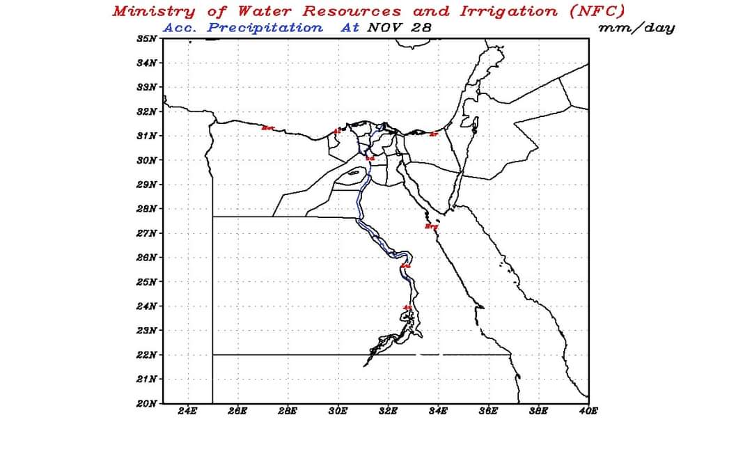 ولفت مركز التنبؤ بفيضان النيل إلى أنه من المتوقع عدم سقوط أمطار خلال فترة التنبؤ، ما بين 28 نوفمبر حتى 30 نوفمبر 2021.