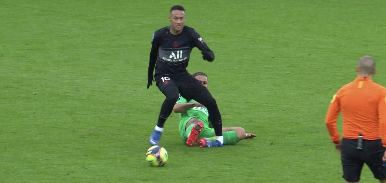 وسقط نيمار على أرض الملعب في الدقيقة 83 بعد تدخل عنيف من لاعب سانت إيتيان على قدمه اليسرى، ليغادر الملعب بعدها مباشرة.
