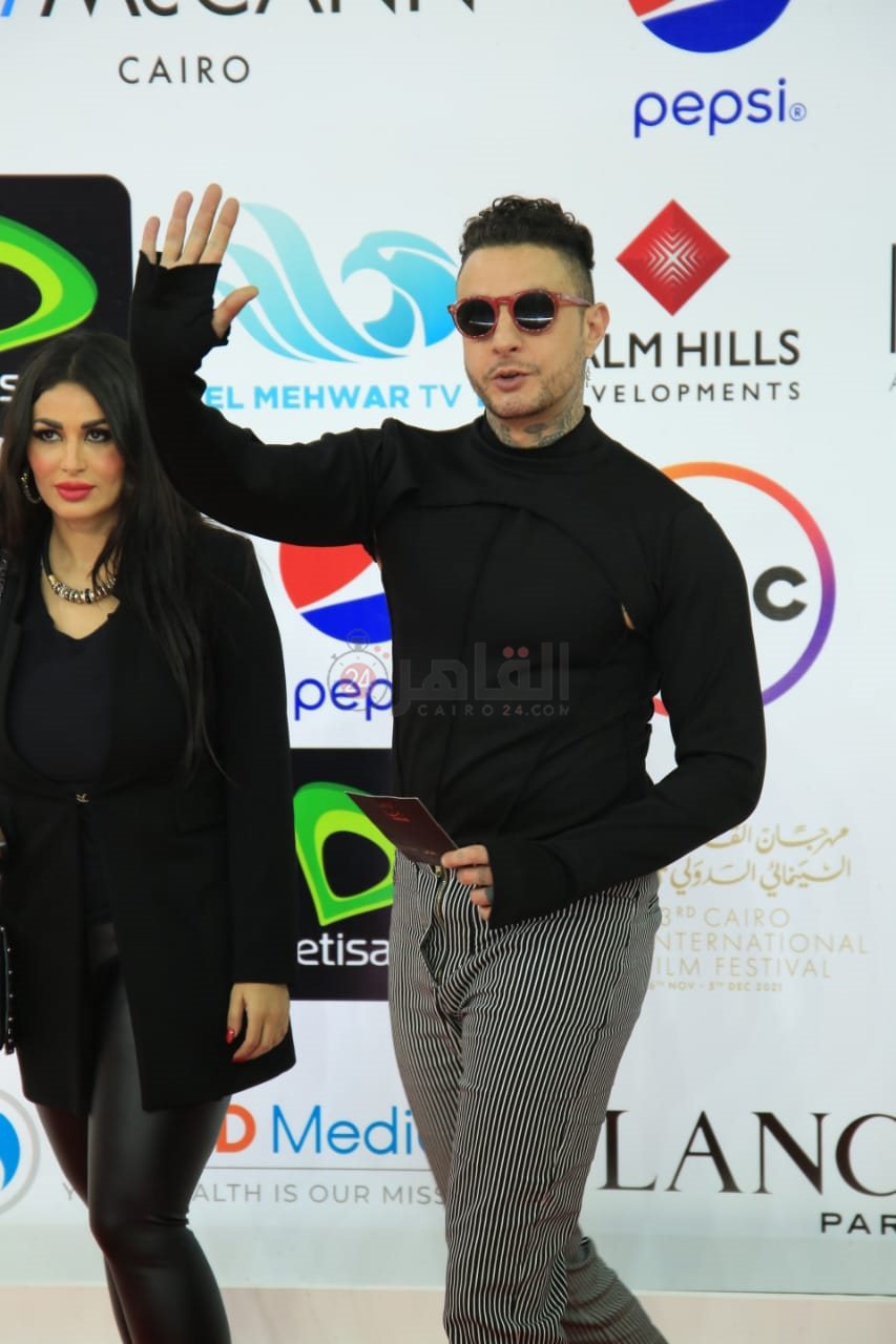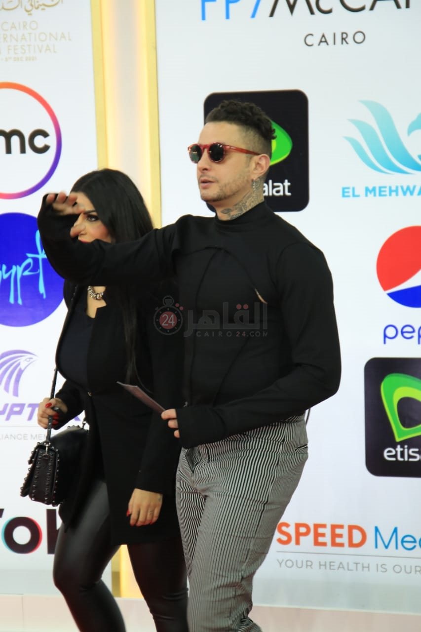 وظهر الفنان أحمد الفيشاوي مرتديًا بدلة باللون الأسود، وزوجته مرتدية بليزر طويل باللون الأسود أيضًا، وداعب الفيشاوي جمهوره على ريد كاربت.
