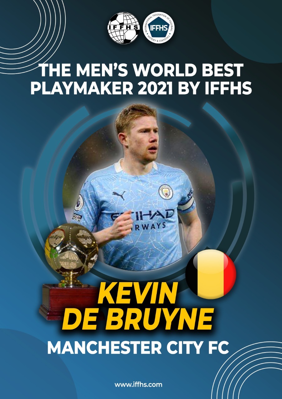 حصل دي بروين على جائزة IFFHS لأفضل صانع ألعاب في العالم للمرة الثانية على التوالي، بعد المستوى المميز الذي قدمه رفقة منتخب بلجيكا ومانشستر سيتي طوال العام.