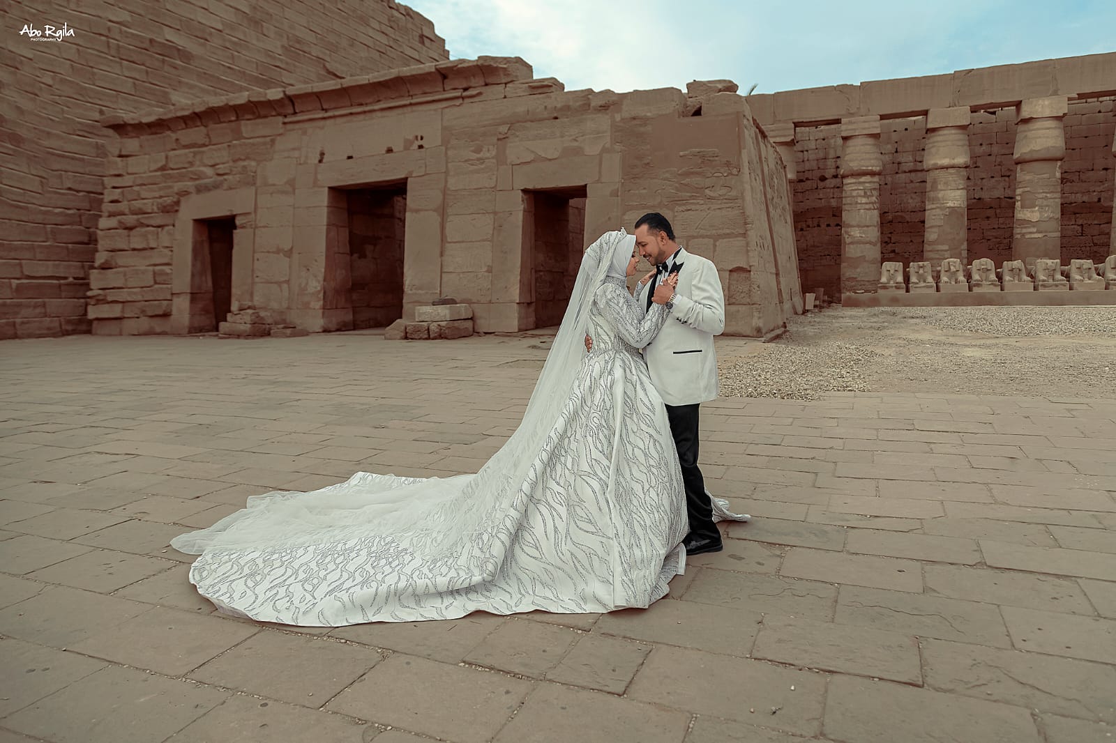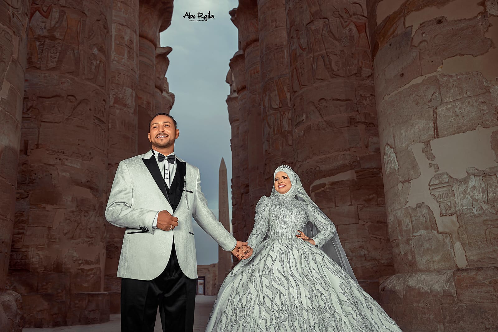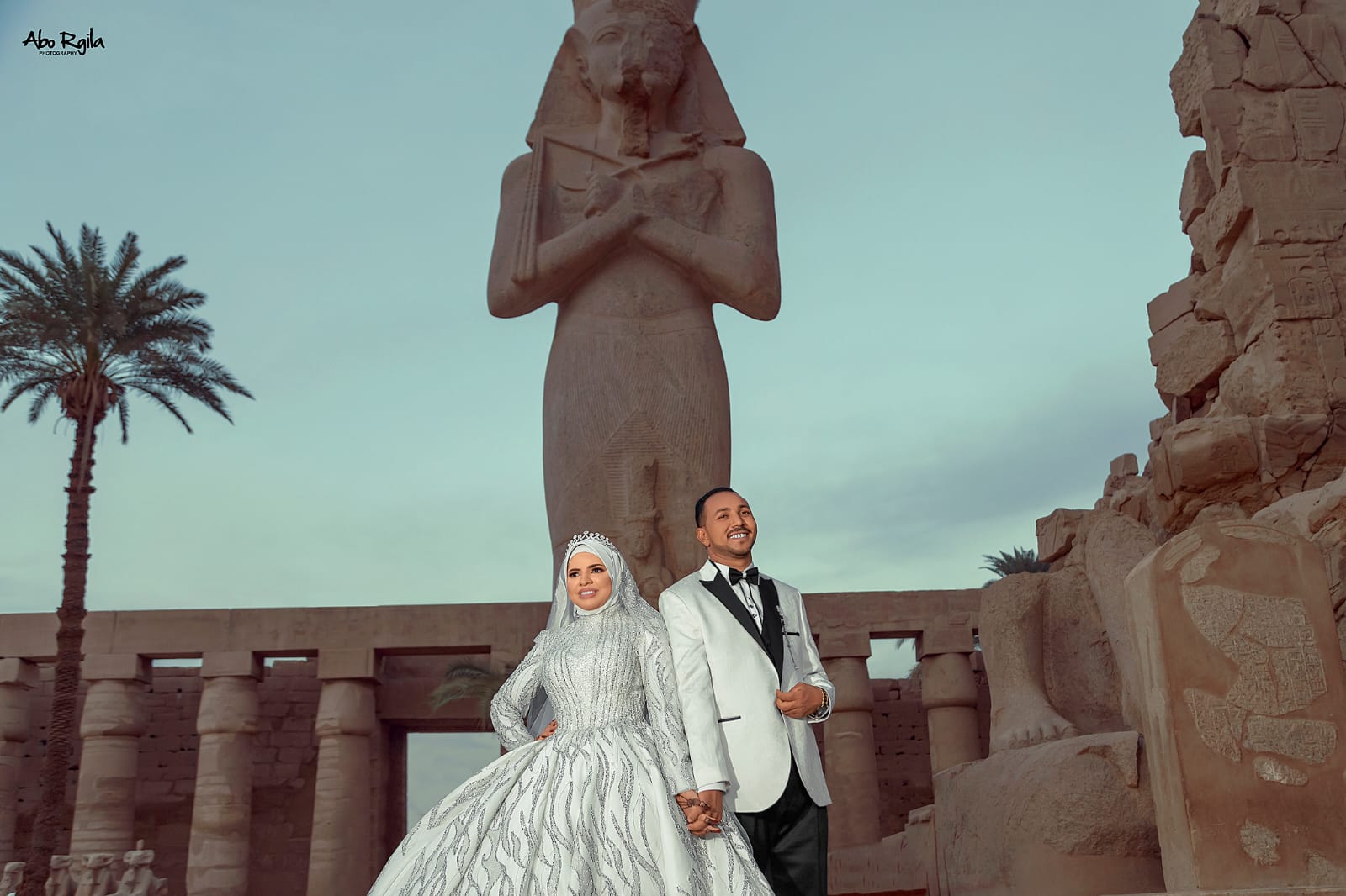 وواصل أبو رجيلة: اقترحتُ على العروسين أكثر من مكان للتصوير، إلا أنهما أعجبا بشدة بالتصوير في طريق الكباش، بالتزامن مع إطلاق حفل الافتتاح الضخم.