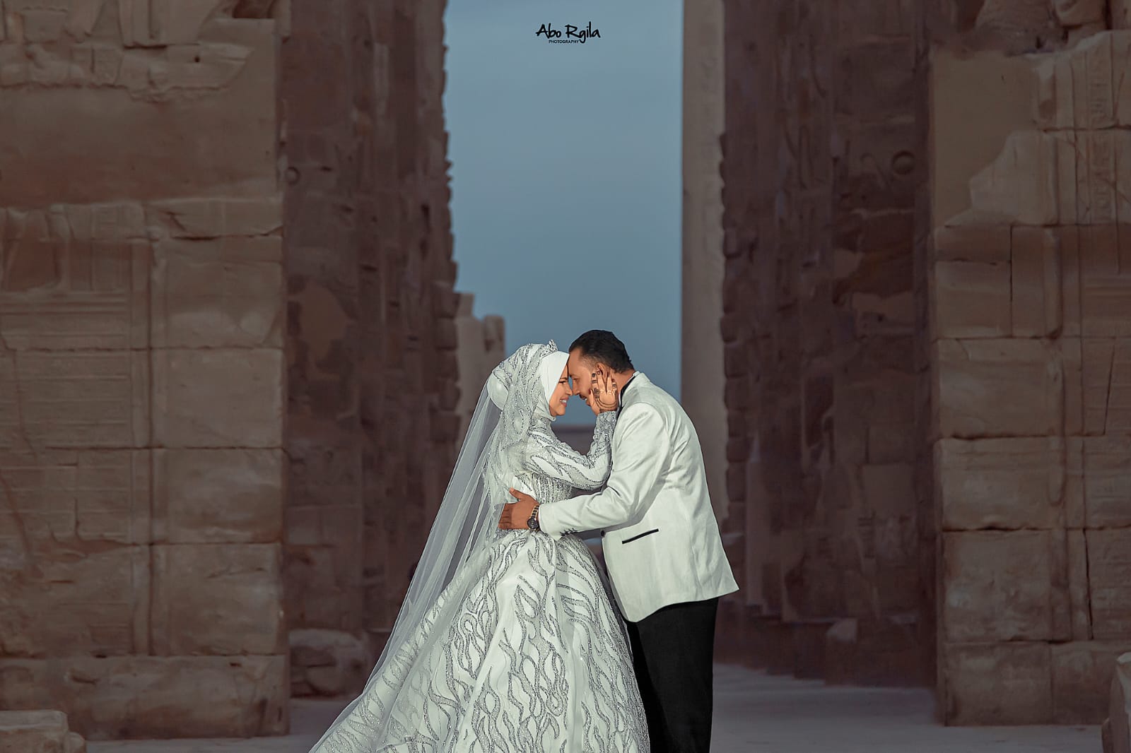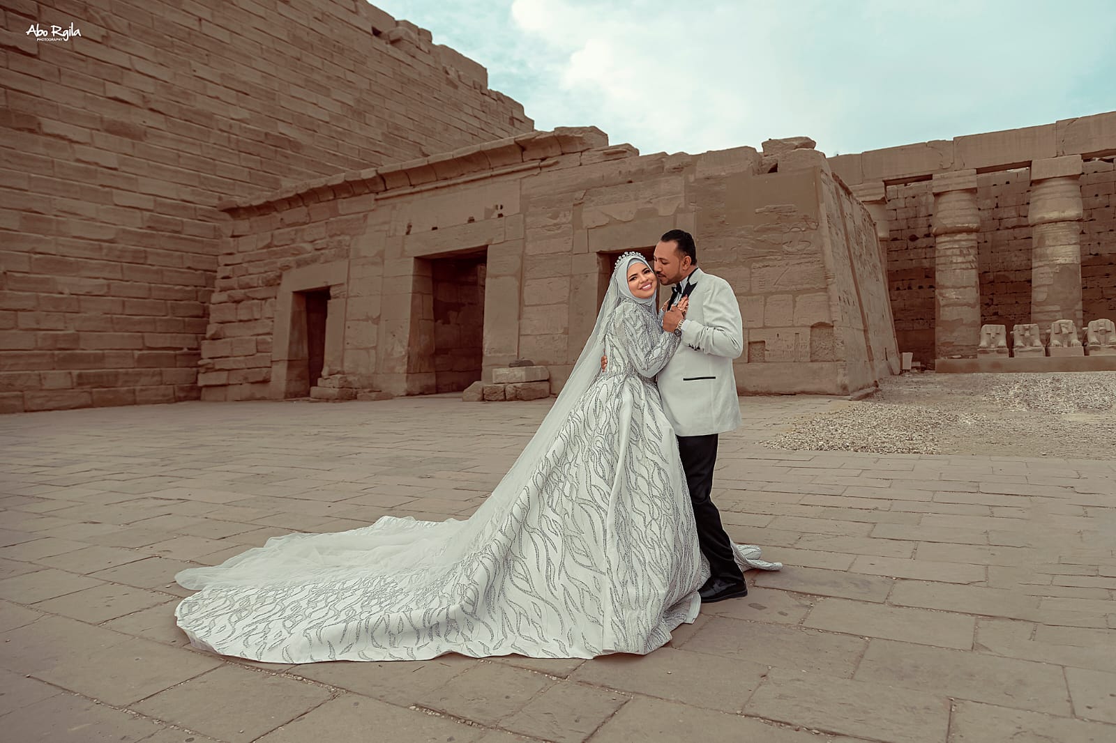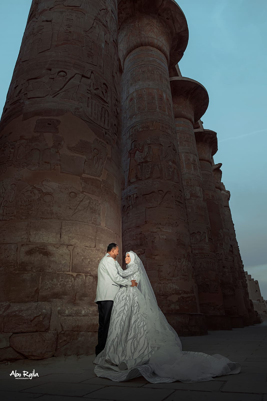 وواصل أبو رجيلة: اقترحتُ على العروسين أكثر من مكان للتصوير، إلا أنهما أعجبا بشدة بالتصوير في طريق الكباش، بالتزامن مع إطلاق حفل الافتتاح الضخم.