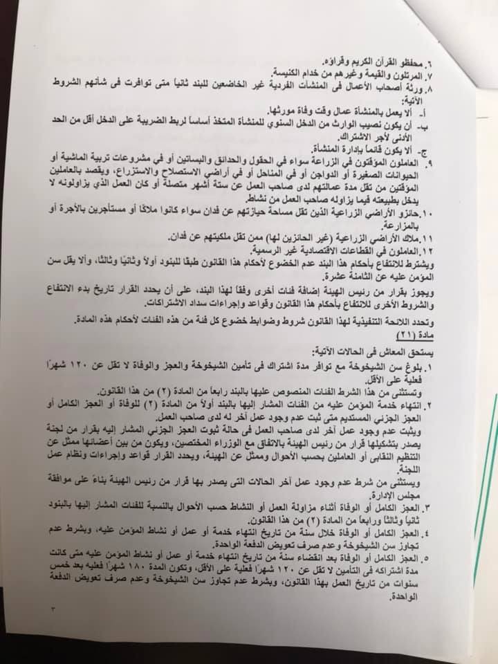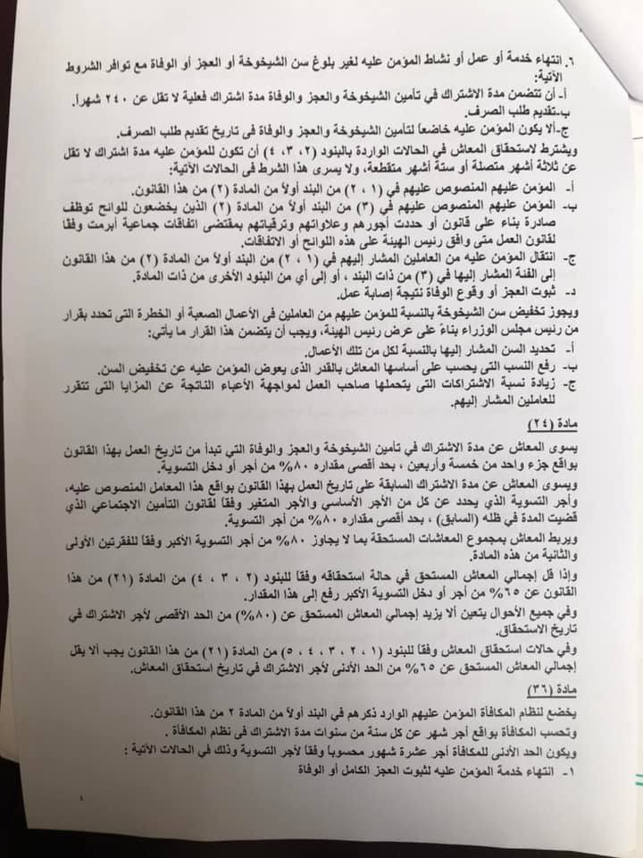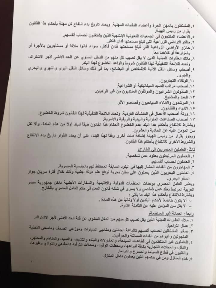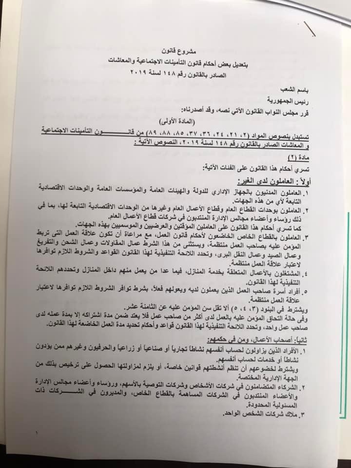 تعديلات جديدة في قانون التأمينات والمعاشات لضمان حقوق العمالة غير المنتظمة | مستندات