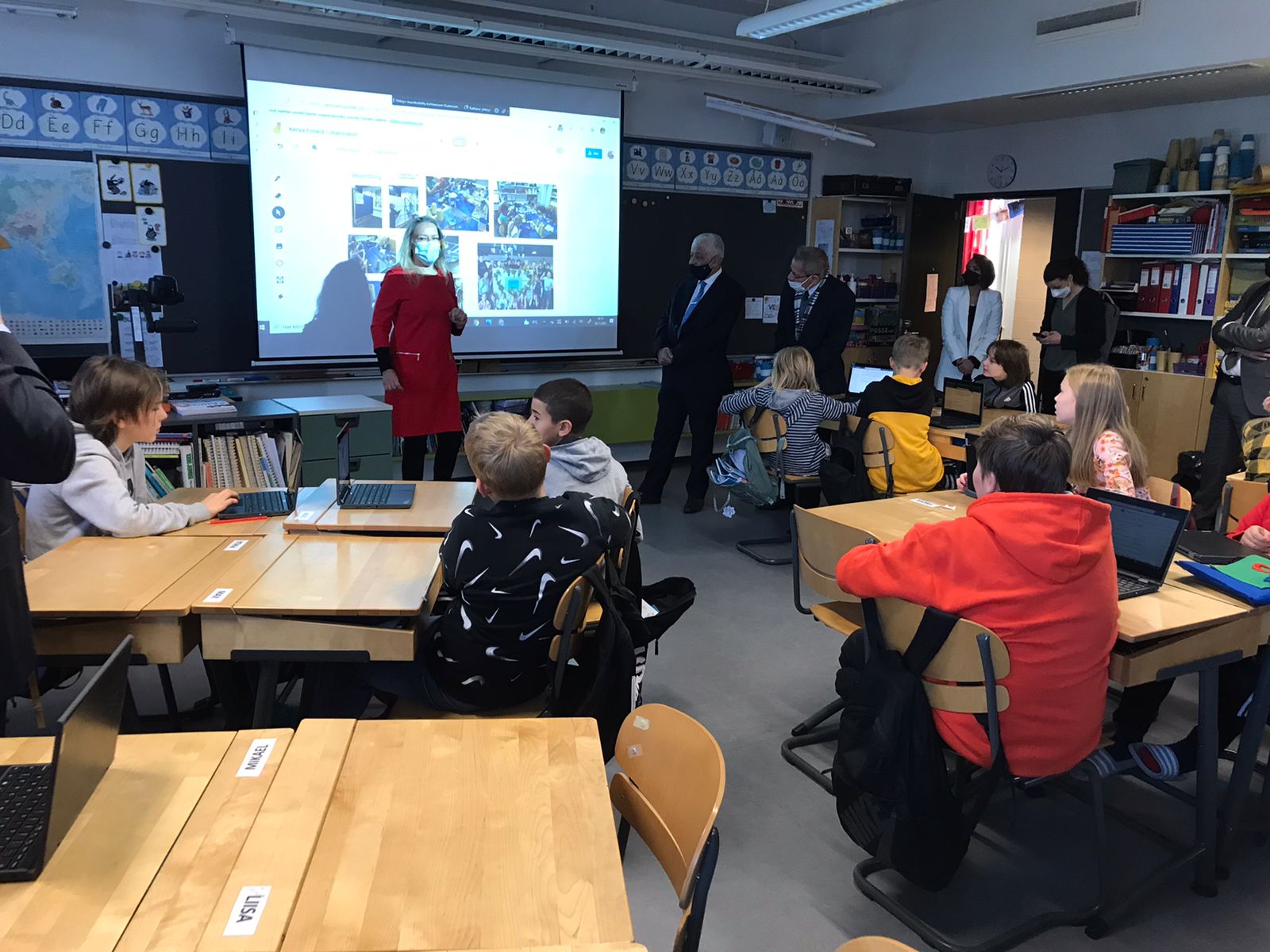 واستمع شوقي، إلى العرض الذي قدمته مديرة المدرسة حول مساهمتها في تعزيز جودة المعلمين في فنلندا منذ عام 1886، وذلك من خلال توفير بيئة آمنة وعالية الجودة للتعليم والتعاون بين المعلمين، وبما يساهم في تطوير عملية التعليم وتطوير المناهج وأساليب التدريب والتعليم.