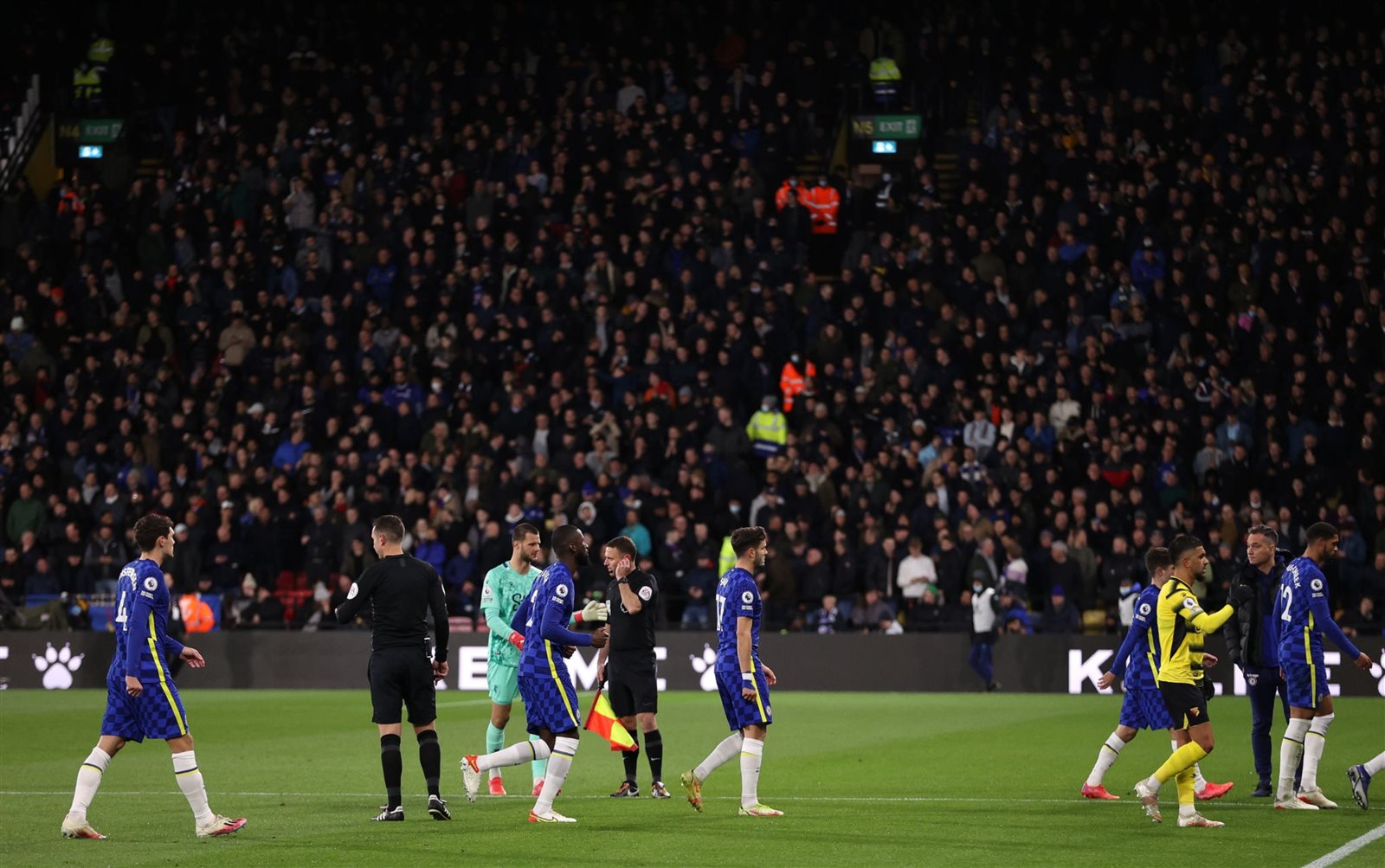 توقفت مباراة تشيلسي ضد فريق واتفورد، ضمن منافسات الجولة الـ 14 من مسابقة الدوري الإنجليزي الممتاز، بسبب حالة طارئة في مدرجات ملعب المباراة مع أحد المشجعين؛ مما استدعى التدخل السريع لإنقاذ حياة أحد الحالات المصابة بأزمة قلبية.