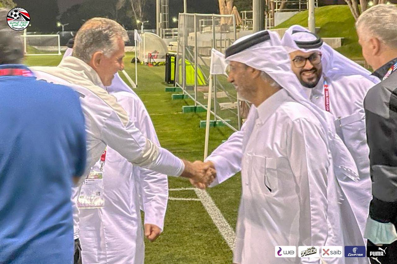 أبوريدة ورئيس اتحاد الكرة القطري يزوران تدريب المنتخب.. وحمدي فتحي يغيب عن المران