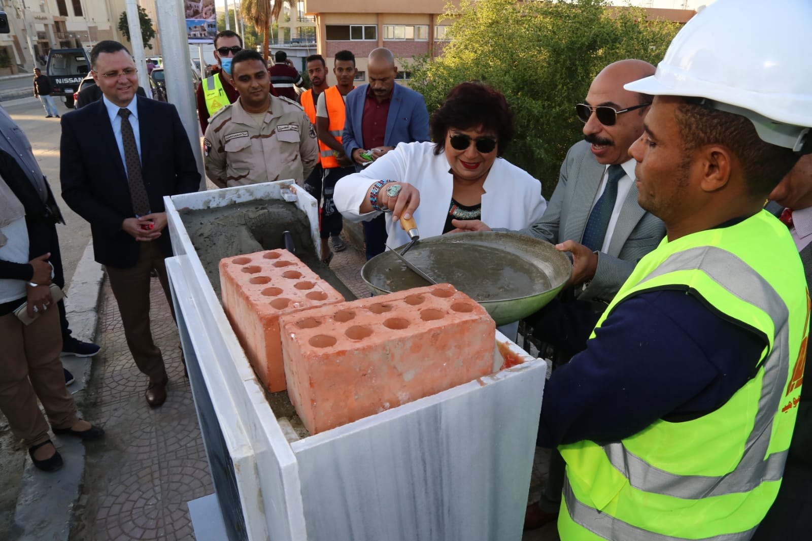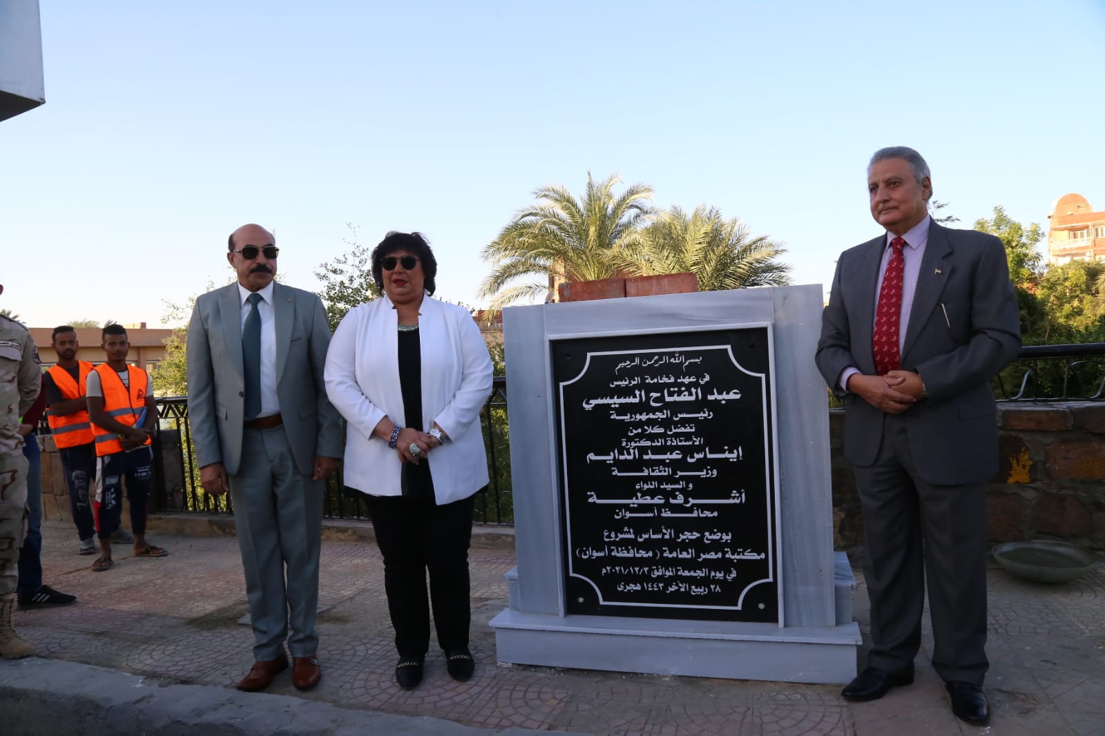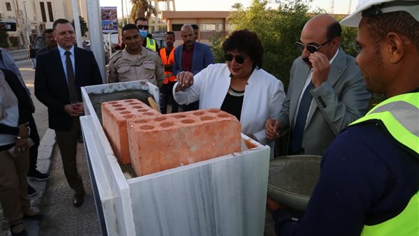 وزيرة الثقافة ومحافظ أسوان يضعان حجر أساس فرع مكتبة مصر العامة