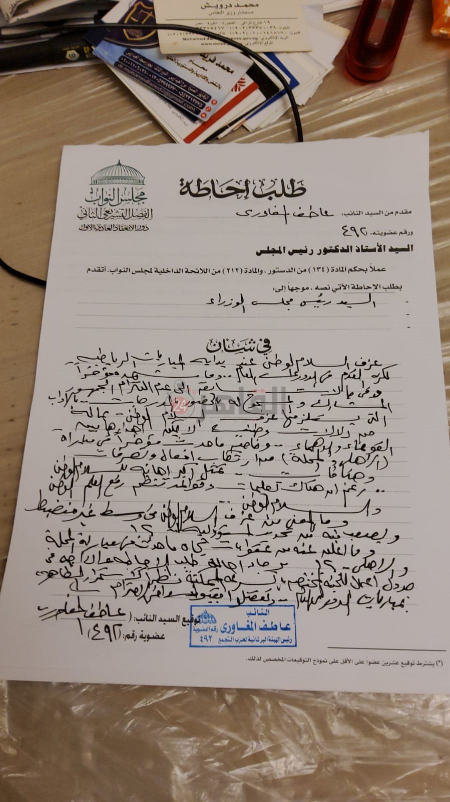 مجلس النواب لم يكن بعيدًا عن خط الأزمة حيث شهد تحركًا من النائب عاطف مغاوري عضو لجنة الشئون الدستورية والتشريعية في المجلس ورئيس الهيئة البرلمانية لحزب التجمع الذي تقدم بطلب إحاطة للمستشار حنفي الجبالي رئيس مجلس النواب موجه للدكتور مصطفى مدبولي رئيس مجلس الوزراء بشأن عزف النشيد الوطني قبل مباريات الدوري العام لكرة القدم وما شهده من عدة حالات تشير إلى عدم التزام الجمهور المشارك بالآداب التي يتطلبها عزف السلام الوطني.
