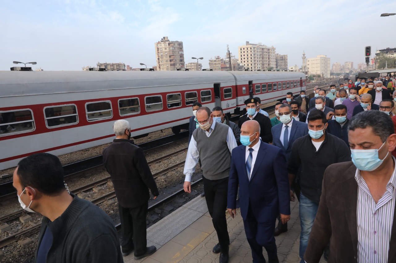 كما تفقد الوزير الأرصفة من 1 حتى رصيف 8 بالمحطة، بالإضافة إلى أحد قطارات الدرجة الثالثة الروسي ذات التهوية الديناميكية المتجه من القاهرة إلى الإسكندرية للتأكد من مستوى نظافة القطار ومستوى الخدمة المقدمة، كما زار وزير النقل محطة الشرق وتابع مستوى الخدمة المقدمة للركاب بأحد القطارات المتجه من القاهرة إلى طنطا.