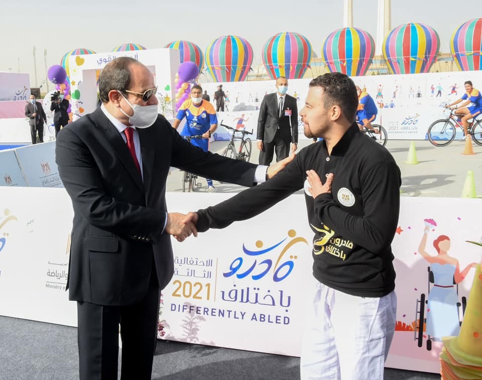 تفقد الرئيس عبد الفتاح السيسي اليوم خلال مشاركته في النسخة الثالثة من احتفالية قادرون باختلاف الساحة الرياضية لمشاهدة فعاليات ممارسة الرياضات المختلفة من قبل أبطال الاتحاد الرياضي المصري لأصحاب القدرات الخاصة، بالإضافة إلى تفقده أجنحة معرض المنتجات الحرفية والوسائل التكنولوجية لذوي الهمم، كما التقى أعضاء أوركسترا النور والأمل.