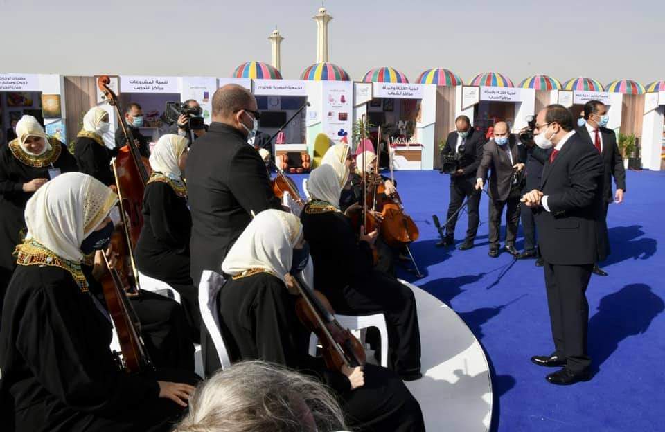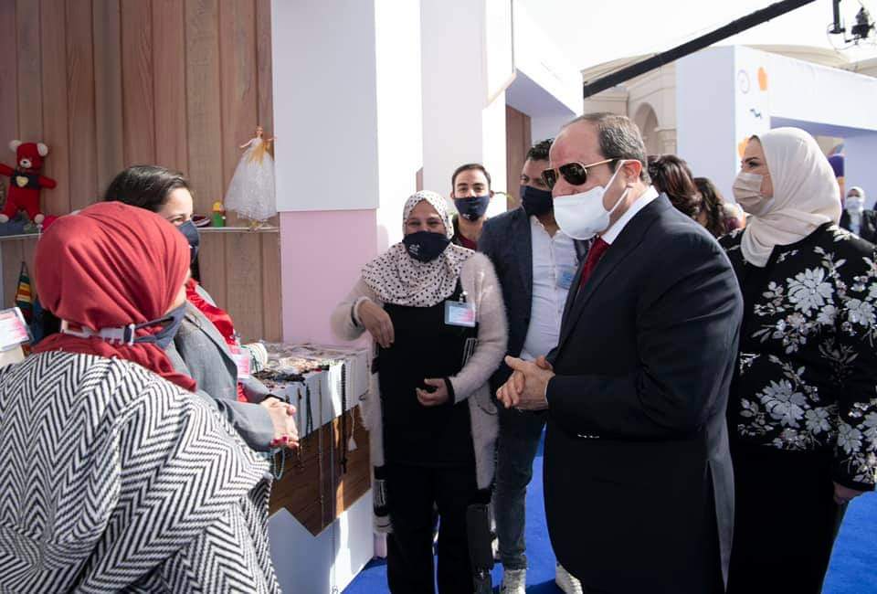 وعلى هامش الاحتفالية تفقد الرئيس السيسي أجنحة معرض المنتجات الحرفية والوسائل التكنولوجية لذوي الهمم، بالإضافة إلى لقائه بأعضاء أوركسترا النور والأمل.