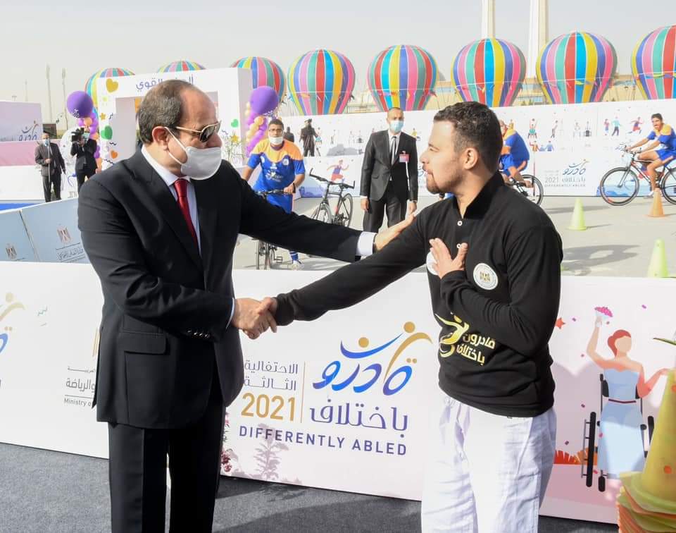 شارك الرئيس عبد الفتاح السيسي، اليوم في النسخة الثالثة من احتفالية قادرون باختلاف، الساحة الرياضية لمشاهدة فعاليات ممارسة الرياضات المختلفة من قبل أبطال الاتحاد الرياضي المصري لأصحاب القدرات الخاصة.