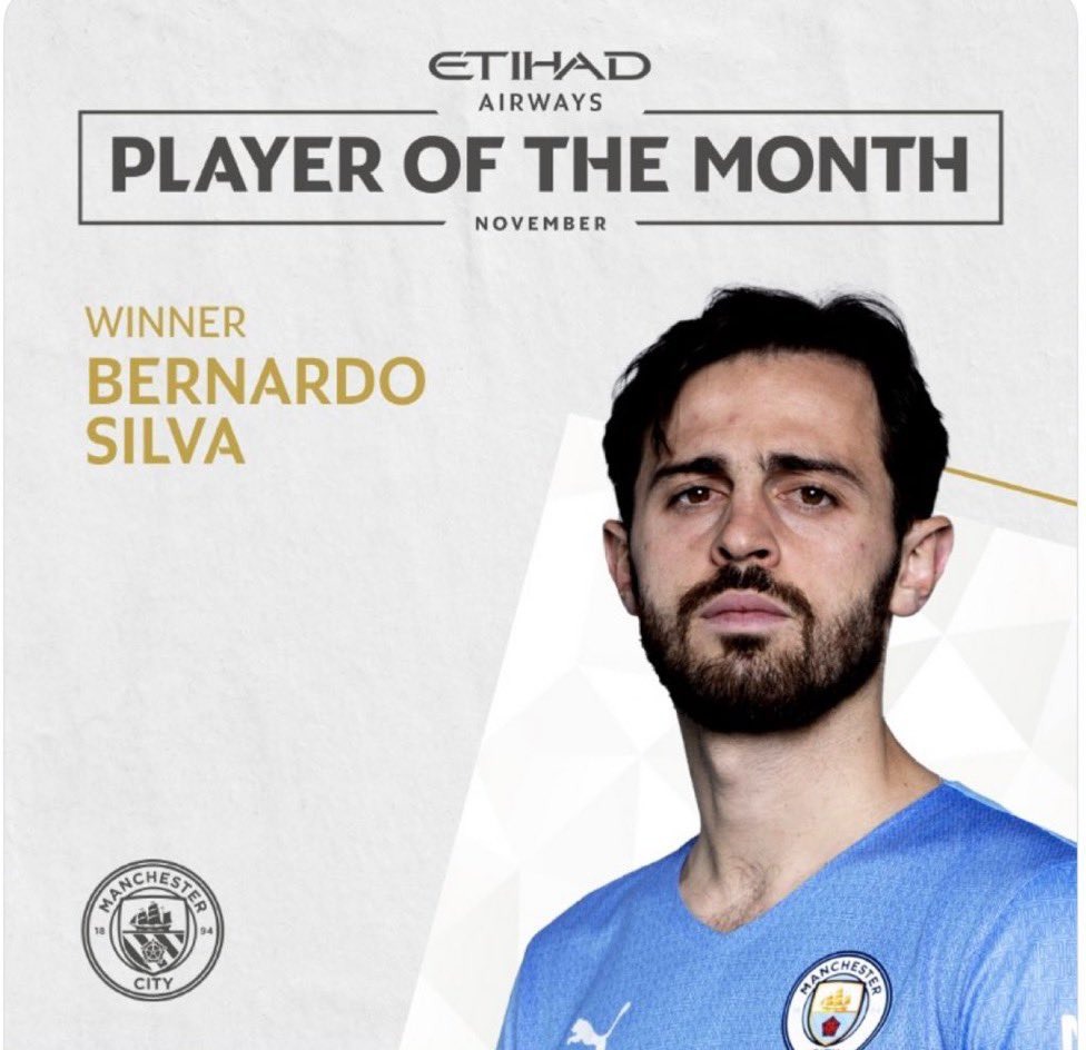 أعلن نادي مانشستر سيتي، حصول البرتغالي، برناردو سيلفا على جائزة أفضل لاعب في الفريق للشهر الثالث على التوالي من قبل جماهير السيتي.