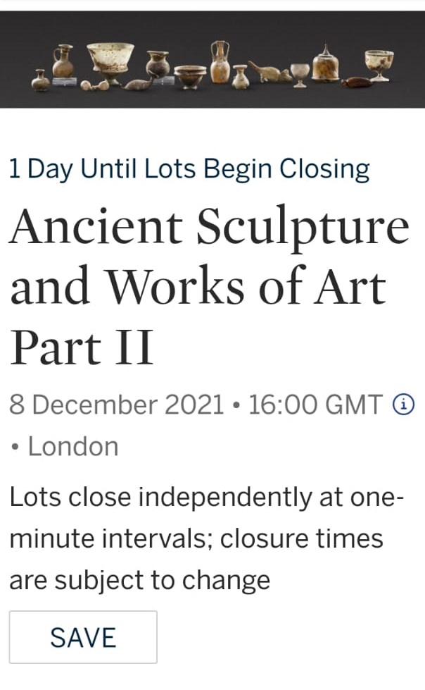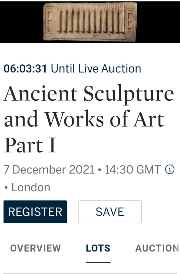 كشف بسام الشماع المؤرخ في علم المصريات مزادًا يتم إقامته غدًا 8 ديسمبر، ويسمى مزاد سوذبيز بـ لندن بإنجلترا، معلقًا: المزاد يعرض بيع مجموعة لا تُقدر بثمن من القطع الأثرية القديمة من أصل عربي ومصري قديم.