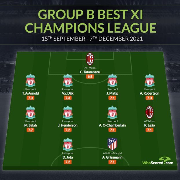 نشرت شبكة who scored عبر حسابها الرسمي على موقع التواصل الاجتماعي تويتر، التشكيل المثالي لمجموعة الثانية في مسابقة دوري أبطال أوروبا، التي شهدت استحواذا كبيرا من فريق ليفربول الإنجليزي.
