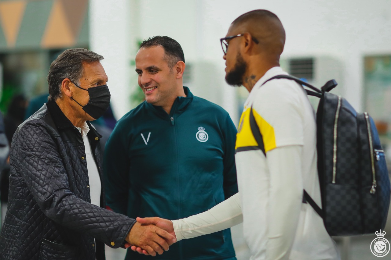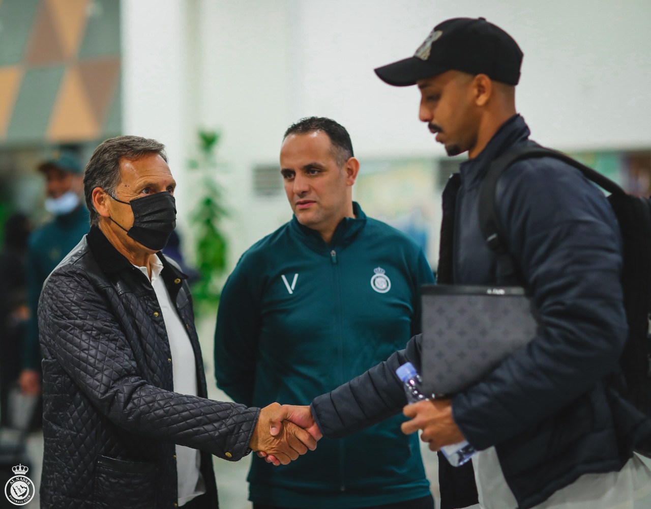 روسو يلتقي لاعبي النصر السعودي في المطار قبل المغادرة إلى حائل لمواجهة الطائي | صور