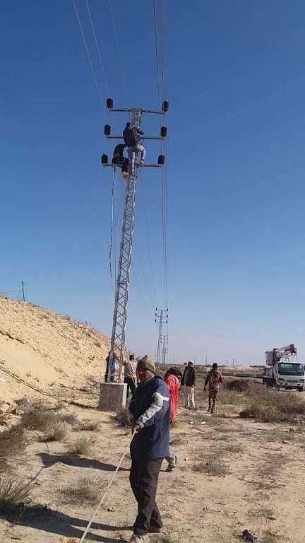 انتهت شركة الكهرباء بمحافظة شمال سيناء من إصلاح عطل في أحد الدوائر الكهربائية المُغذية لمدينة الشيخ زويد؛ استمر لمدة يومين، وأعيد التيار الكهربائي مرة أخرى.