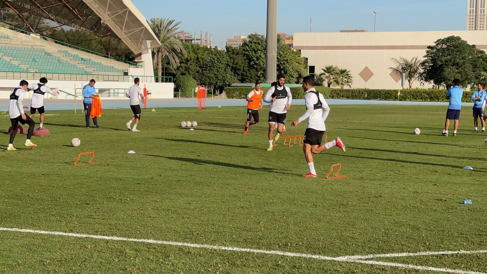وجاء المران الصباحي قويًا، حيث أقيم في ملعب شرطة دبي، القريب من مقر فندق إقامة البعثة، واشتمل على مجموعة من الوحدات البدنية القوية والفنية، تحت إشراف إيهاب جلال المدير الفني، وجهازه المعاون.