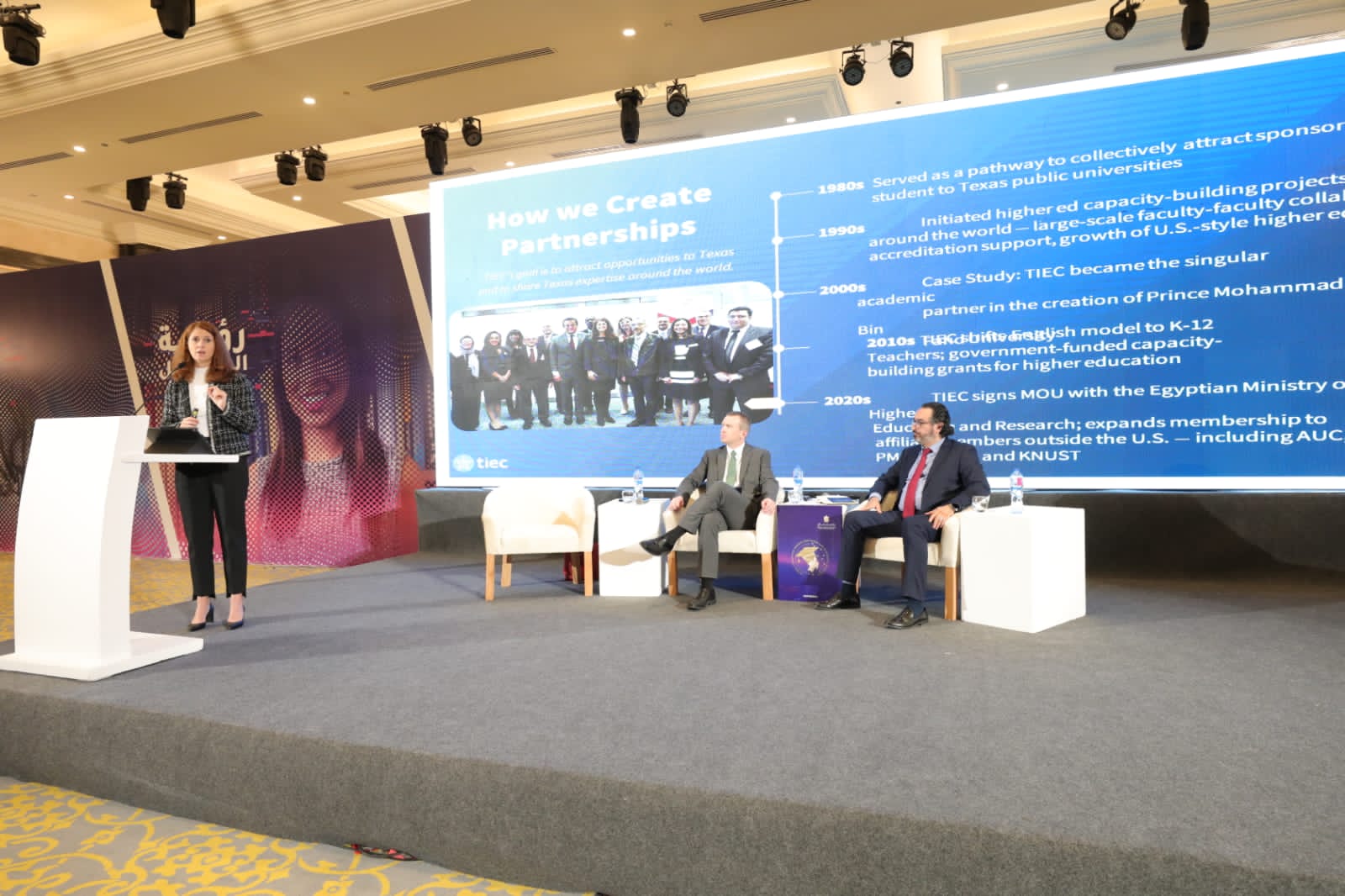 وأضاف المشاركون أن اتحاد Tiec يتطلع لزيادة عدد الجامعات المُنضمة له، فضلًا عن جذب المزيد من الطلاب الدوليين للانضمام لجامعة تكساس، مشيرين إلى توقيع اتفاق تعاون مع وزارة التعليم العالي والبحث العلمي، وعدد من الجامعات المصرية، منها: (جامعة الجلالة)، بالإضافة إلى التعاون مع المملكة العربية السعودية وغيرها من الدول، موضحين الدور الذي قام به الاتحاد أثناء جائحة كورونا، خاصة فيما يتعلق بتبادل المناهج الدراسية، والتبادل الافتراضي.