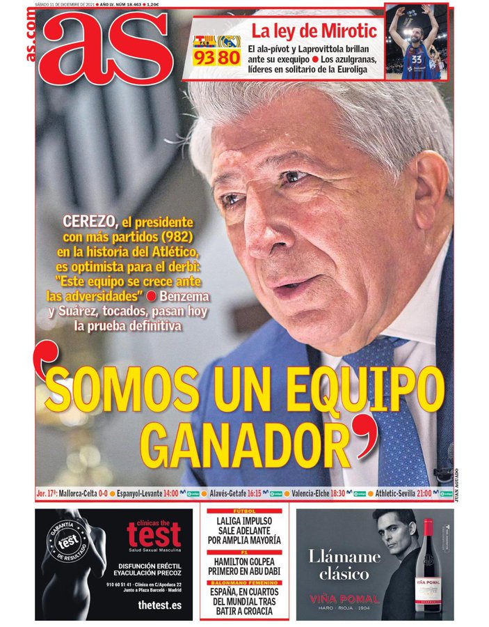 سلطت آس الضوء على حديث سزيرو رئيس نادي أتلتيكو مدريد الإسباني قبل الديربي، وذلك تحت عنوان سيريزو.. نحن فريق رابح.