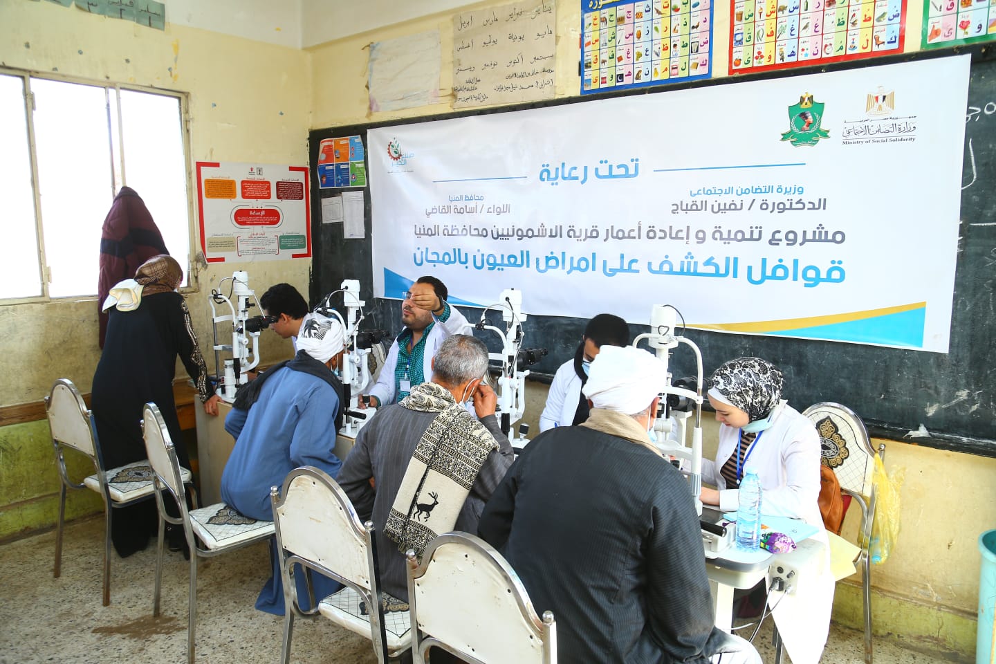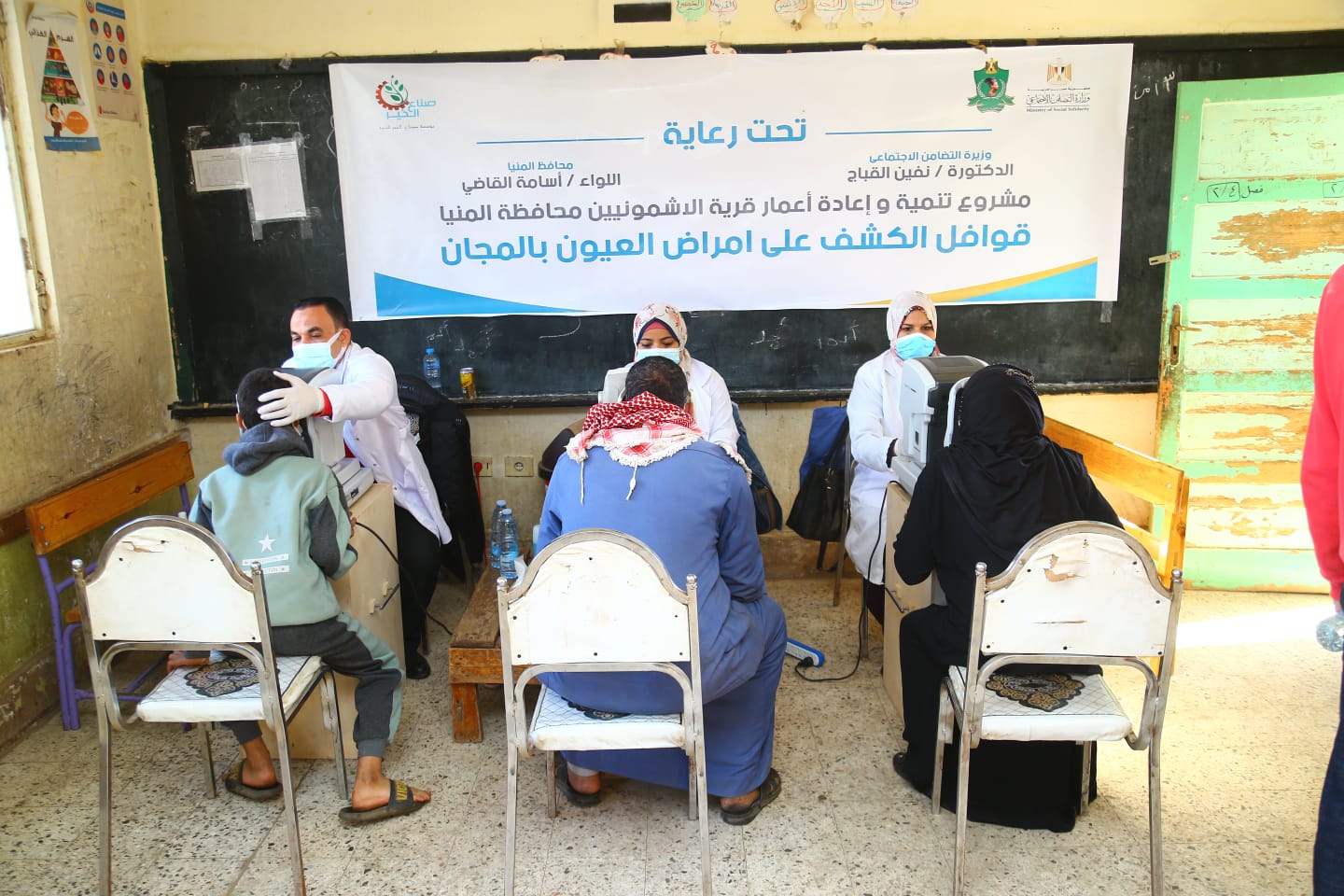 وانطلقت أعمال المرحلة الأولى من تطوير وتنمية قرية الأشمونين من خلال تنظيم قافلة طبية موسعة للكشف على أمراض العيون، نجحت في توقيع الكشف على 1023 من أهالي القرية بالمجان.