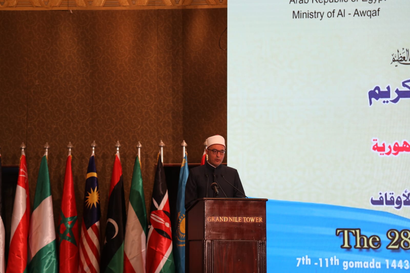 وختم الأمين العام كلمته بالتأكيد على أن البشرية في هذا العصر في أمس الحاجة إلى وحي إلهي يرد إليها رشدها ويهيئ لها أمرها ويأخذ بأيديها إلى الطريق المستقيم، ويخرج بها من الفتن والشبهات والشهوات فيعود بها إلى فطرتها النقية ولا يوجد غير القرآن الكريم يحقق هذا وزيادة؛ لأنه مخرج لها من كل فتن، كما أرشدنا لذلك نبينا صلى الله عليه وسلم.