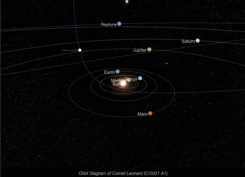 واكتشف المذنب في 3 يناير 2021، الفلكي جيرج ليونارد من مرصد ماونت ليمون في ولاية أريزونا الأمريكية، وسيمر المذنب يوم 12 ديسمبر على بعد نحو 34 مليون كيلومتر من الأرض، ثم بعد ستة أيام - في 18 ديسمبر - سيكون المذنب قريب بشكل استثنائي من كوكب الزهرة وعلى مسافة 4.2 مليون كيلومتر منه.