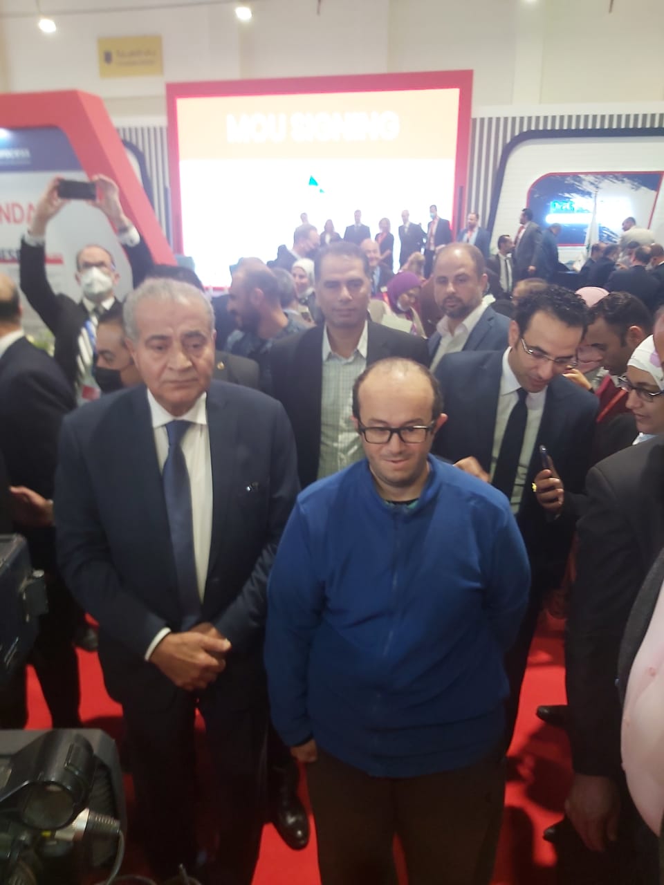 داعب شاب من ذوي القدرات الخاصة، الدكتور علي المصيلحي وزير التموين والتجارة الداخلية، عقب افتتاح مؤتمر فوود إفريقيا.