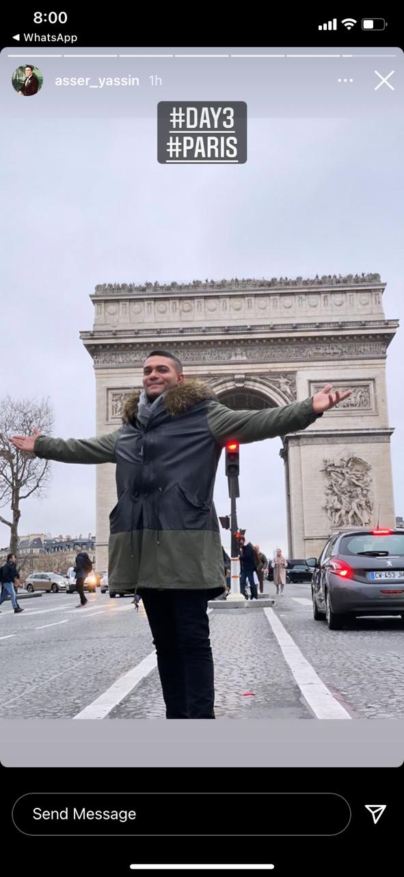 وشارك آسر ياسين جمهوره مجموعة صور له فى فرنسا عبر حسابه الشخصي بموقع تبادل الصور والفيديوهات القصيرة انستجرام، وعلق قائلًا: حان وقت التصوير.
