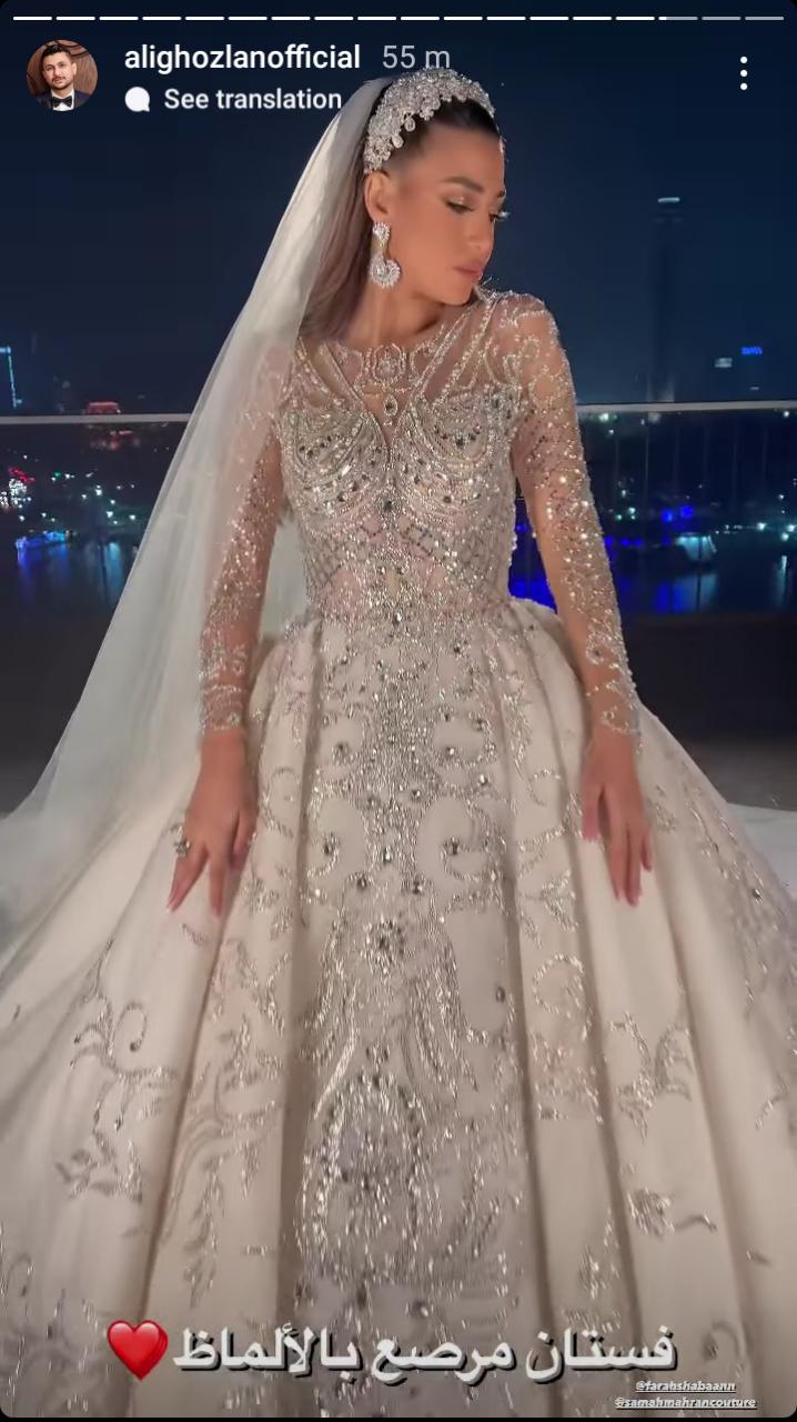 وحرص غزلان، على مشاركة متابعيه الذي يبلغ عددهم 3 ملايين ونص المليون، تفاصيل يومه كعادته، حيث نشر صورة لزوجته فرح شعبان أثناء التقاط صور زفافهم، عبر خاصية استوري في حسابه الشخصي بموقع تبادل الصور والفيديوهات انستجرام، وعلق قائلا: فستان مرصع بالألماظ.