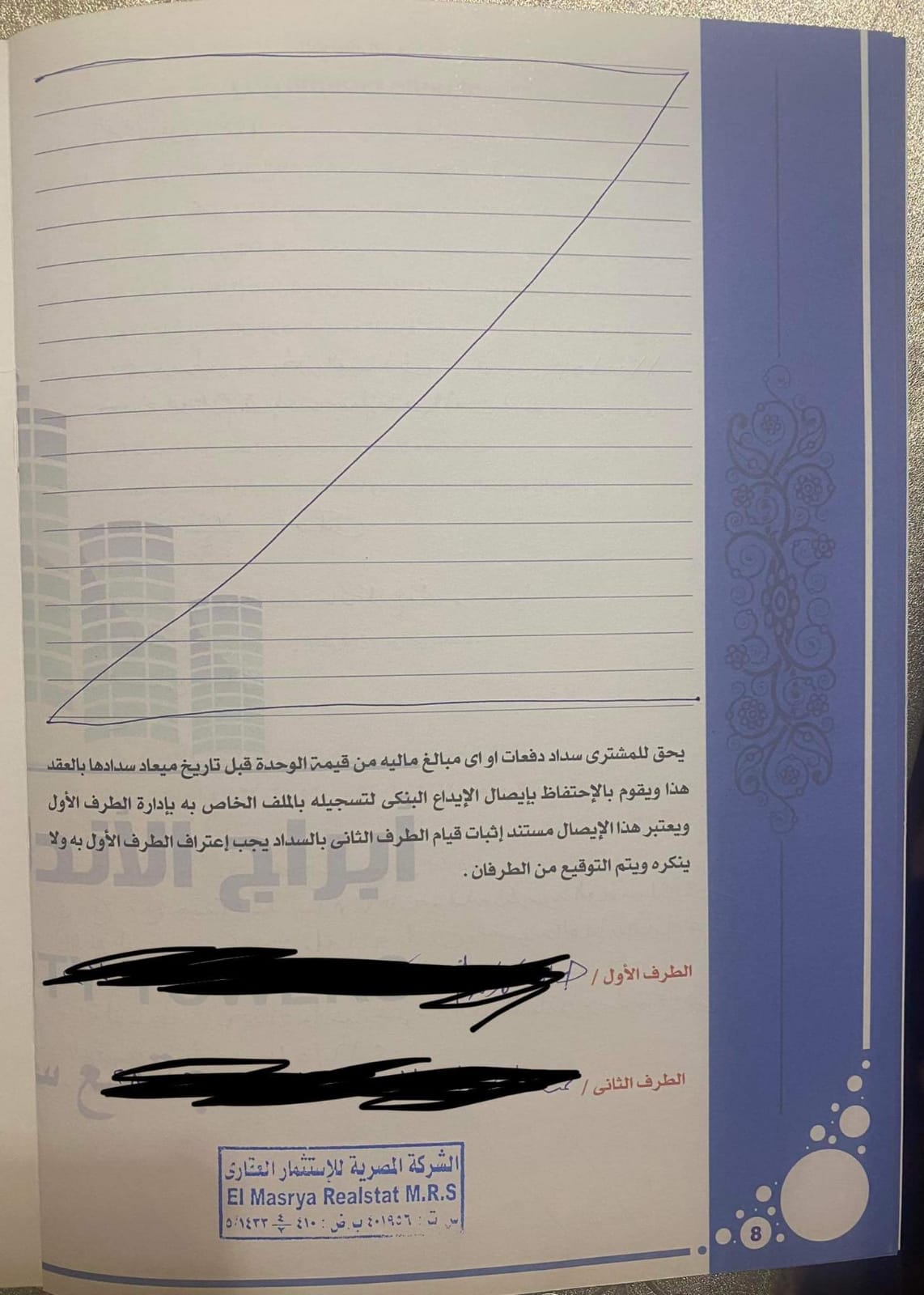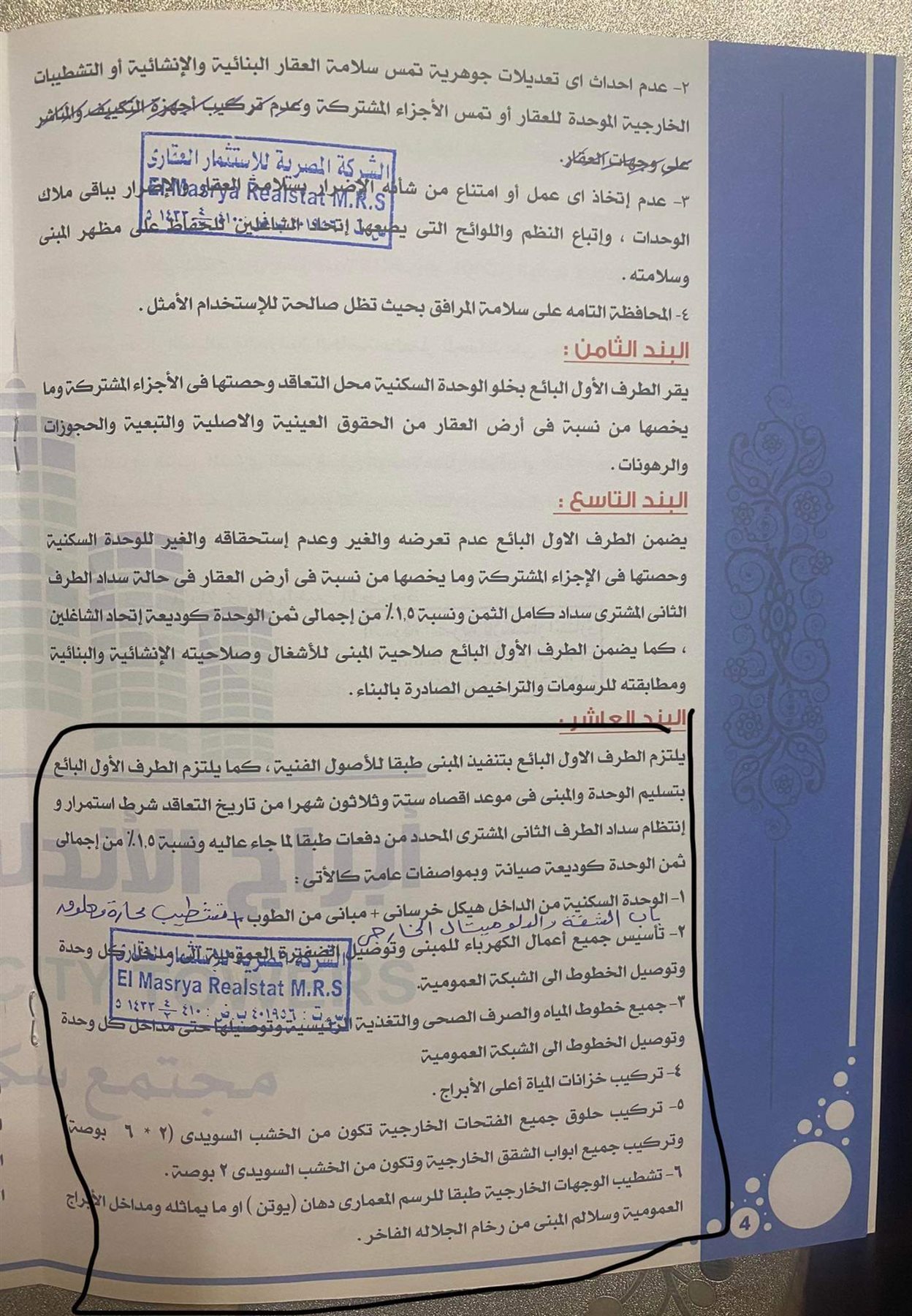 وأشاروا إلي أن من ضمن البنود التي اشتمل عليها العقد أن يلتزم الطرف الأول البائع بتسليم الوحدة والمبني في موعد أقصاه ستة وثلاثين شهرا من تاريخ التعاقد، والذي تم تحرير أغلبها في عام 2015 كما هو موضح في صور العقود.