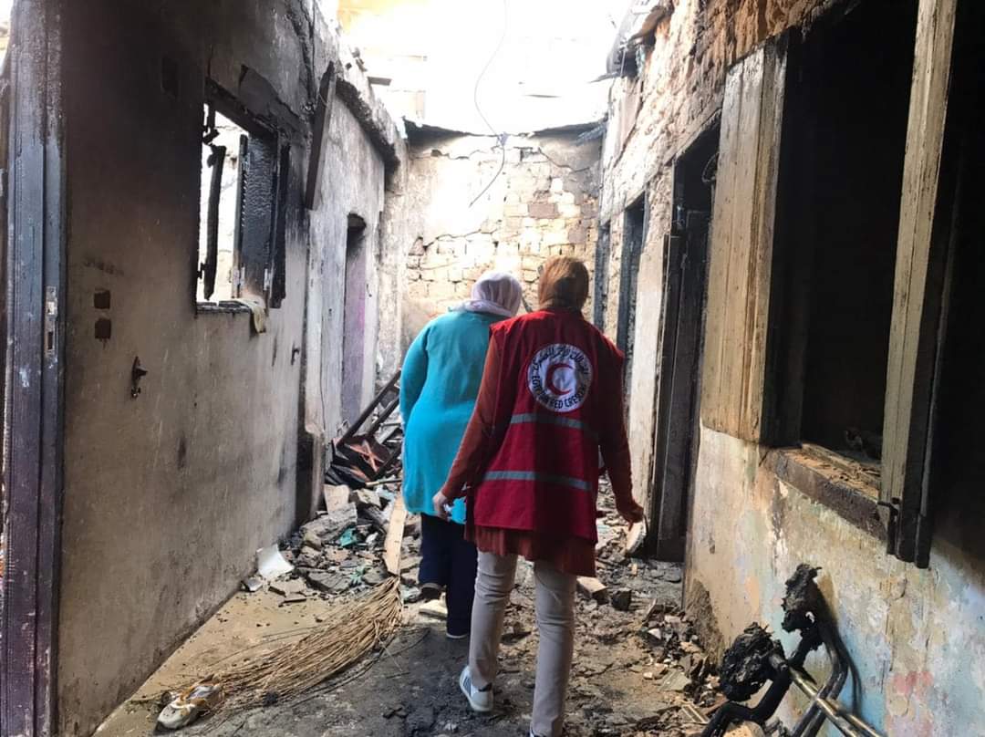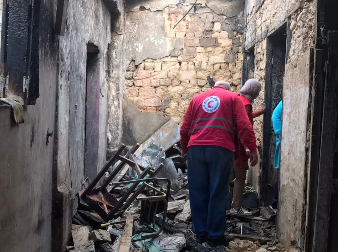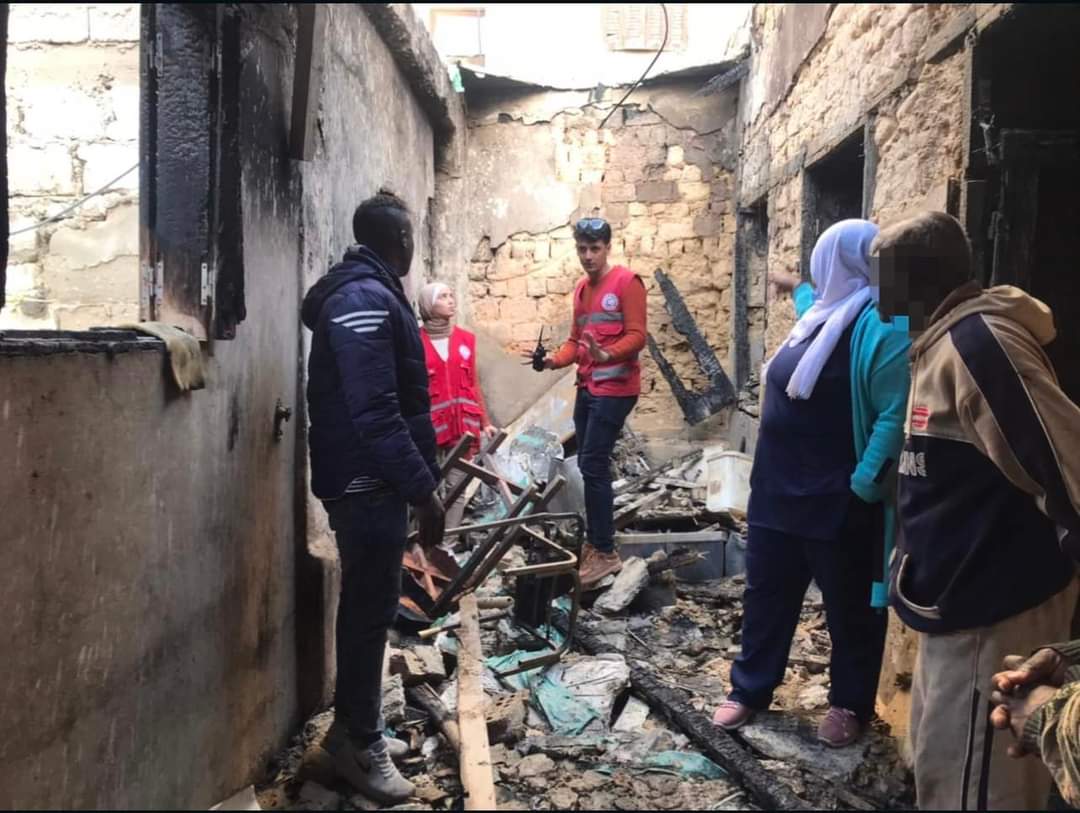 الهلال الأحمر يقدم مساعدات عاجلة لأسرة احترق منزلها بالكامل بالعريش
