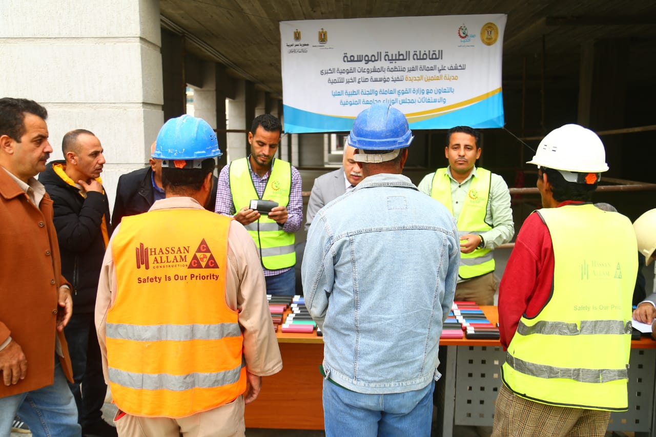 وكان الوزير محمد سعفان وزير القوى العاملة، حرص علي تفقد فعاليات القافلة الطبية الكبرى في مرحلتها الأولي مصدرًا توجيهات إلي الإدارات المعنية بالوزارة بالمتابعة وتذليل كل العقبات لإنجاح القافلة خدمة للعمالة المنتظمة في المشروعات القومية الكبرى، مؤكدًا أن دعم الوزارة للعمالة غير المنتظمة متواصل تنفيذًا لتوجيهات الرئيس عبدالفتاح السيسي رئيس الجمهورية، وأن الوزارة سعت إلي مد جسور التواصل مع منظمات المجتمع المدني الجادة لتقديم خدمات نوعية لشرائح العمالة غير المنتظمة، فضلًا عما تقدمه الوزارة من دعم لهذه الشرائح.