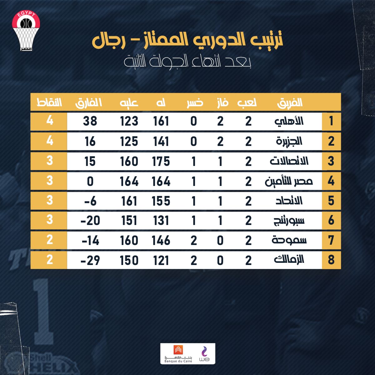 وجاء ترتيب دوري السوبر بعد انتهاء الجولة الثانية كالتالي:-