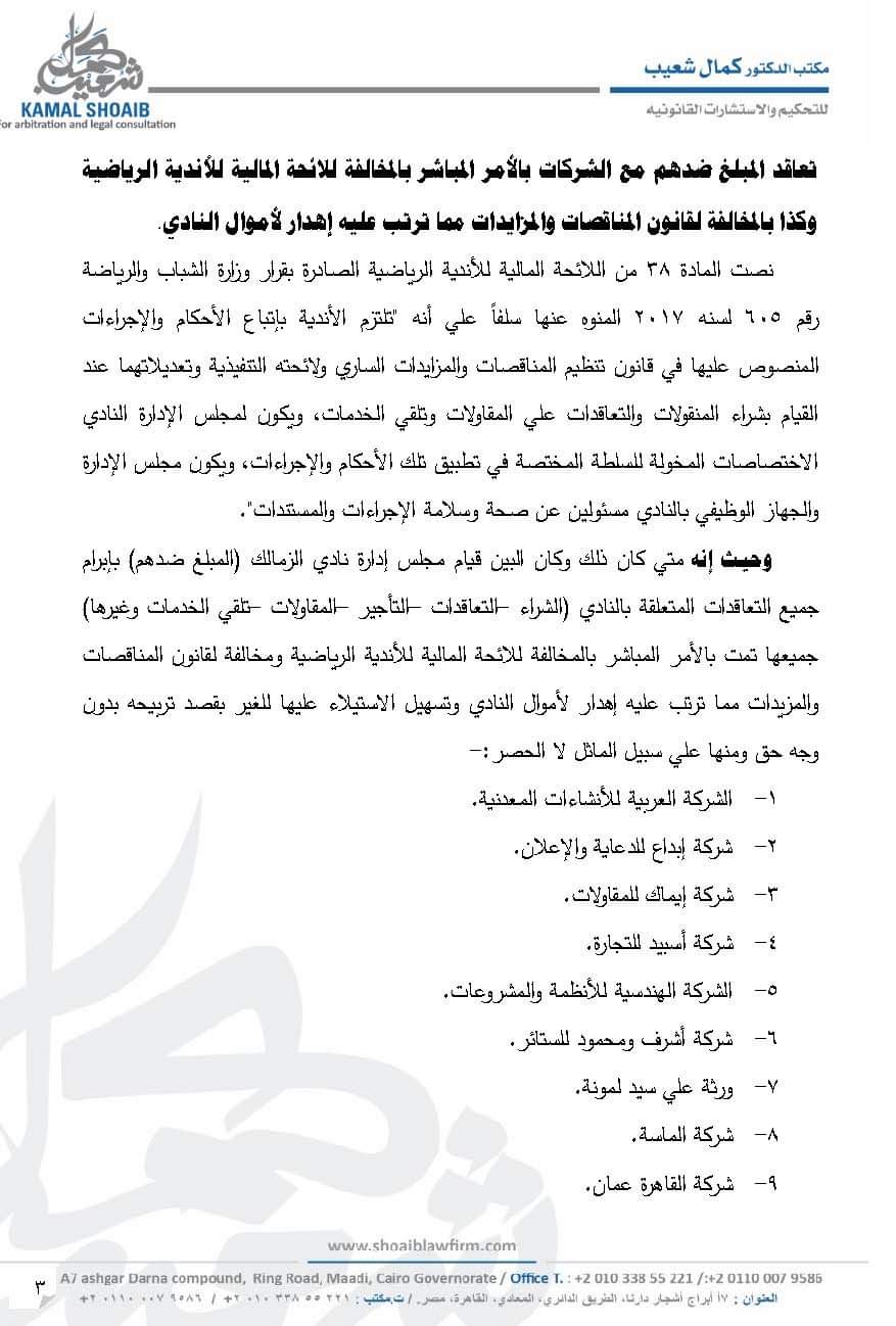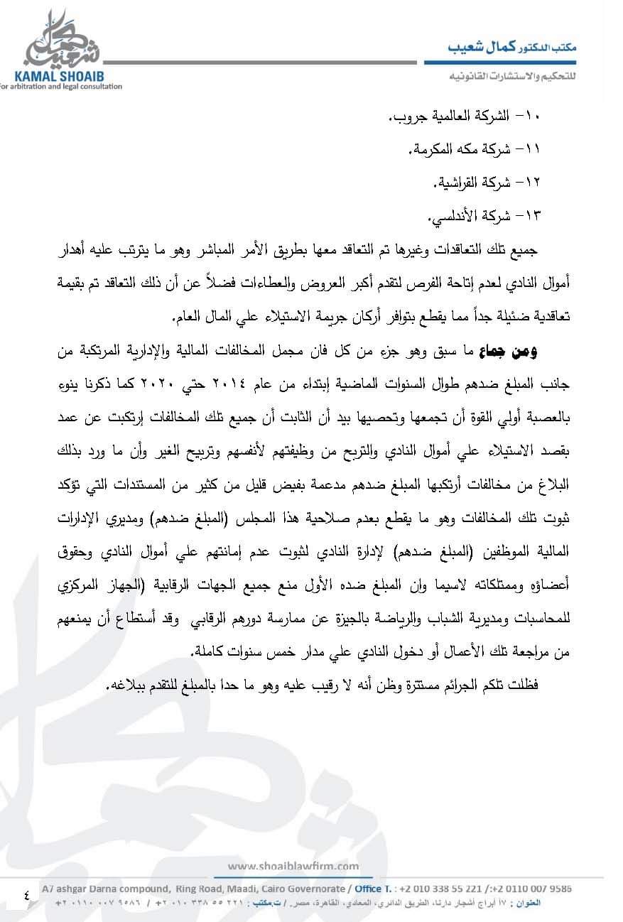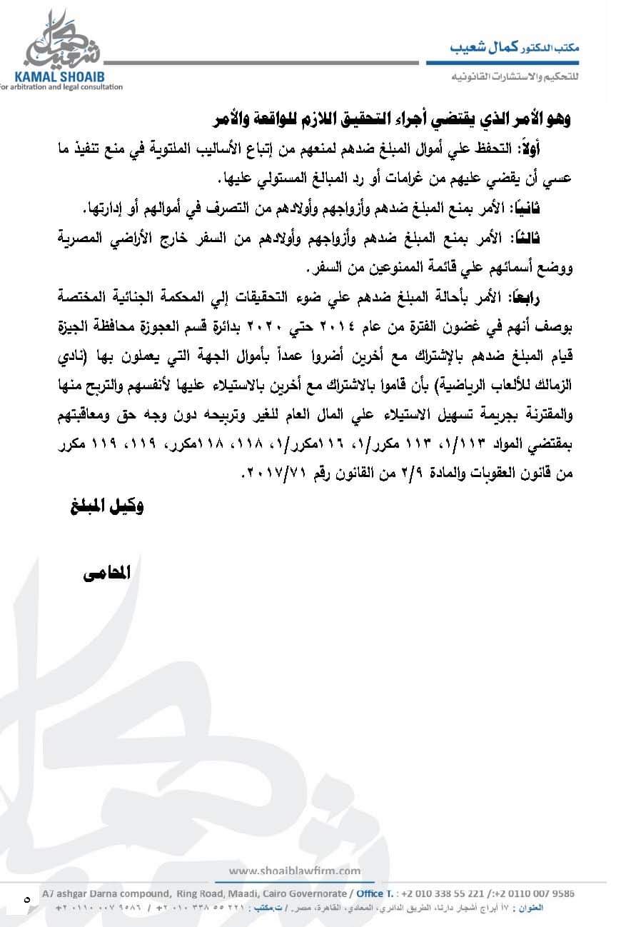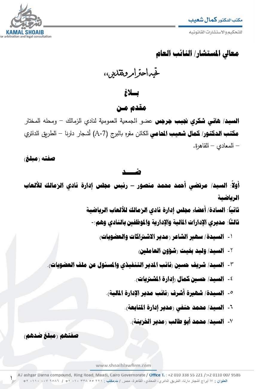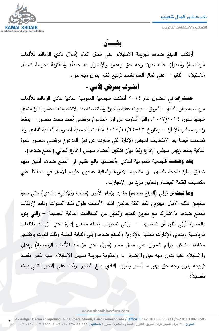 كما تقدم أيضا عضو الزمالك السابق في الدعوى؛ بشكوى ضد مجلس إدارة مرتضى منصور وبعض الموظفين بالنادي؛ منهم على سبيل المثال لا الحصر حسين كمال، مدير المشتريات ومحمد حنفي، مدير المتابعة.