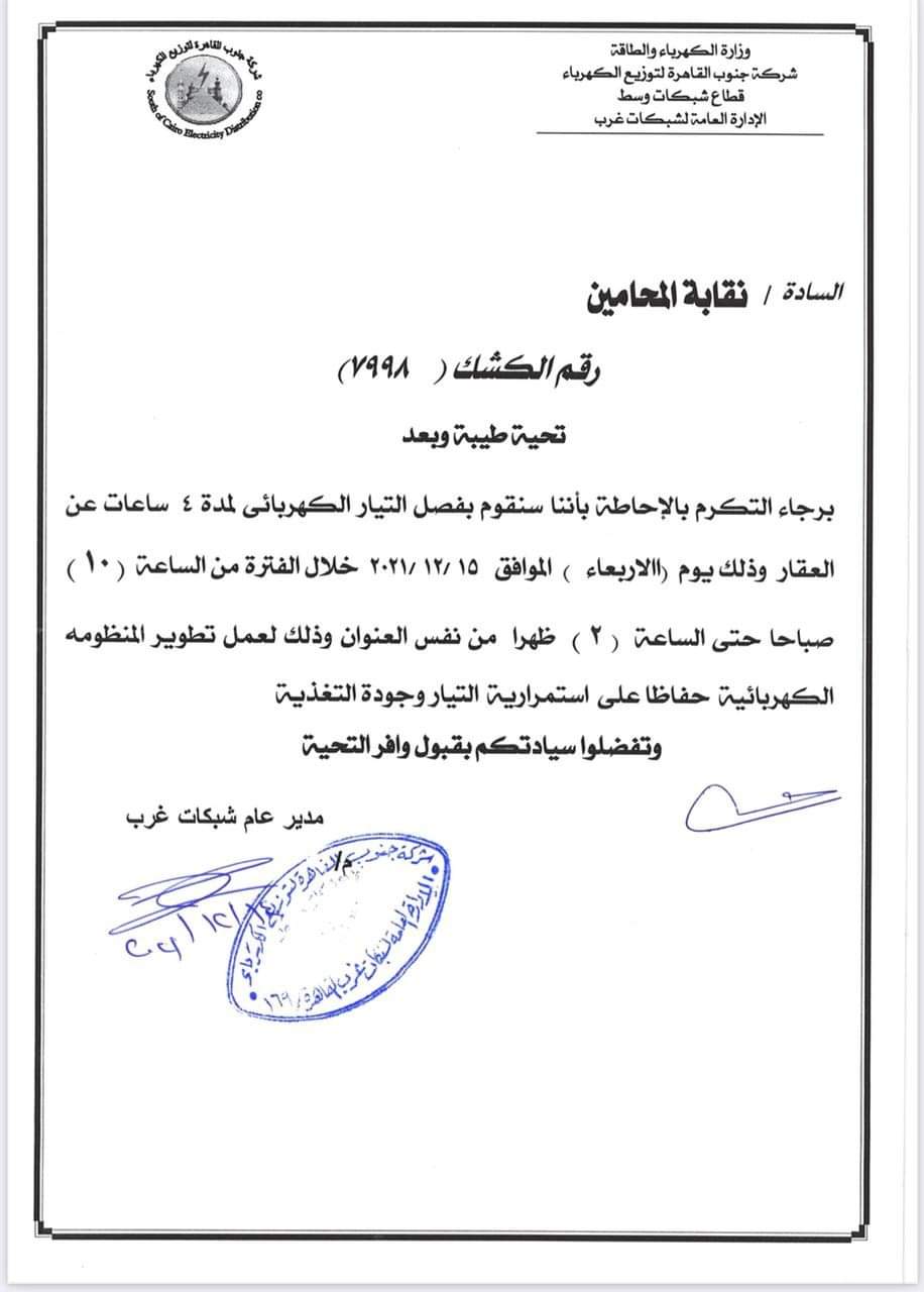 غلق مقر النقابة العامة للمحامين بسبب فصل التيار الكهربائي 4 ساعات غدًا