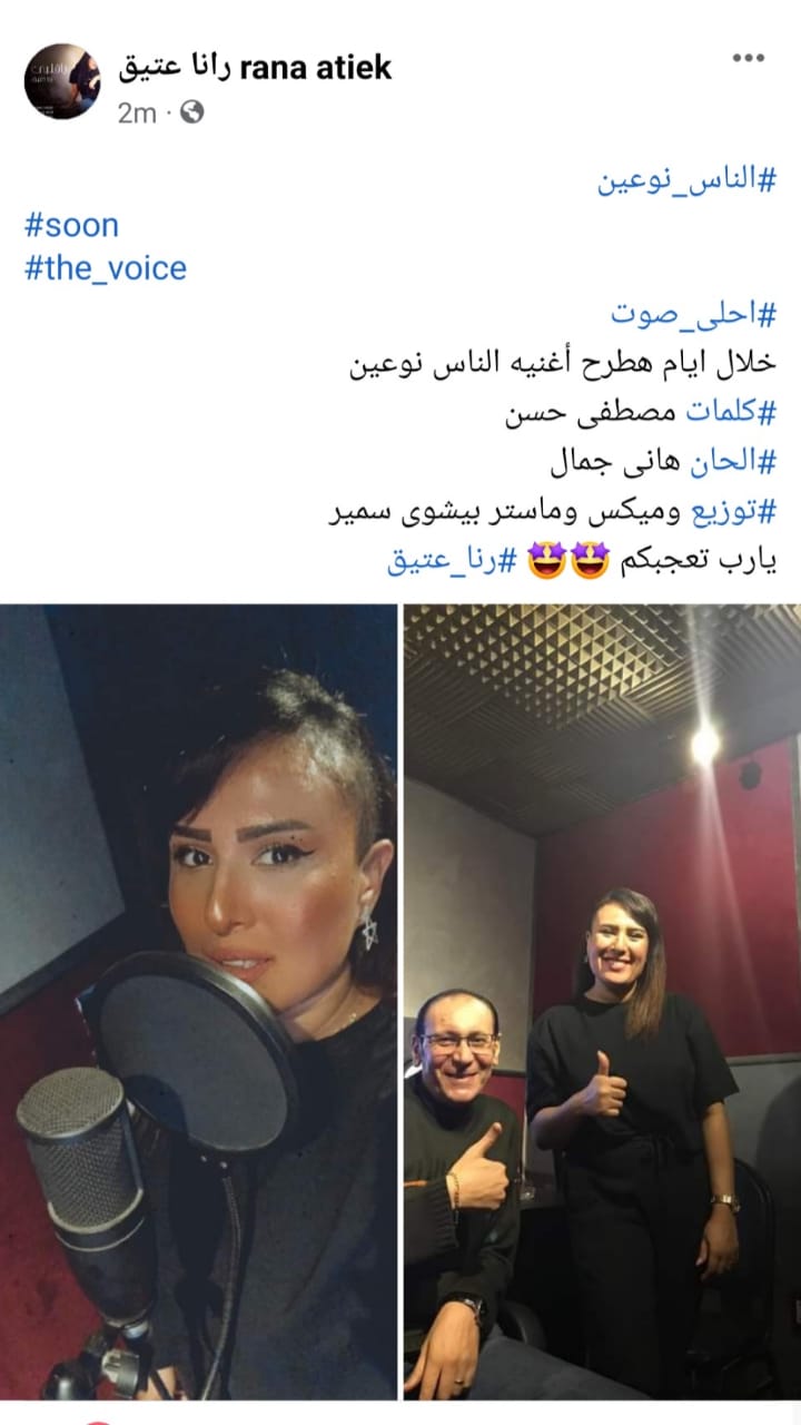 وتابعت رنا عتيق: كلنا حسينا إن الجمهور مش حابب يسمع حاجة راقية وجديدة فاتكتفنا، ولكن بعد وقفة النقابة الأخيرة ضد أغاني المهرجانات، اللي لا تتوافق كلماتها مع قيمنا، حسينا إن حد في ضهرنا وهنقوم تاني، ونقدم فن يليق بيكم وواثقة في ذوق الجمهور، وإنه هيحب الجديد ويشجعه.