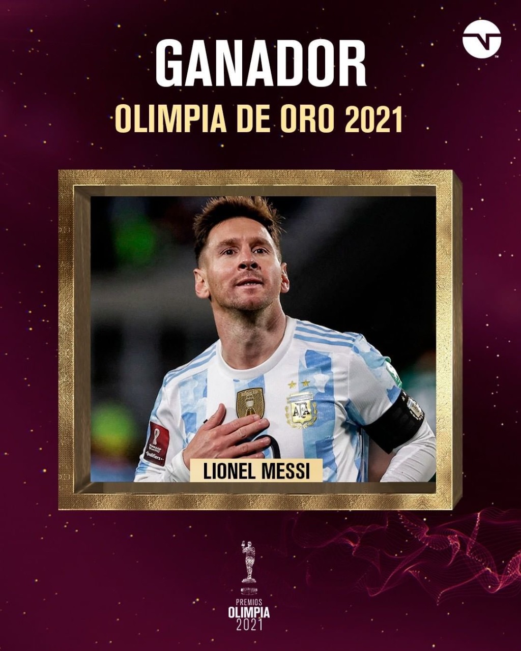 وحصل ليونيل ميسي على جائزة Olimpia de Oro كأفضل رياضي أرجنتيني لعام 2021، والتي حصل عليها لاعب التنس دييجو شوارتزمان لعام 2020، عندما تعذّر إجراء الحفل تسليم هذه الجوائز في أعقاب فيروس كورونا.