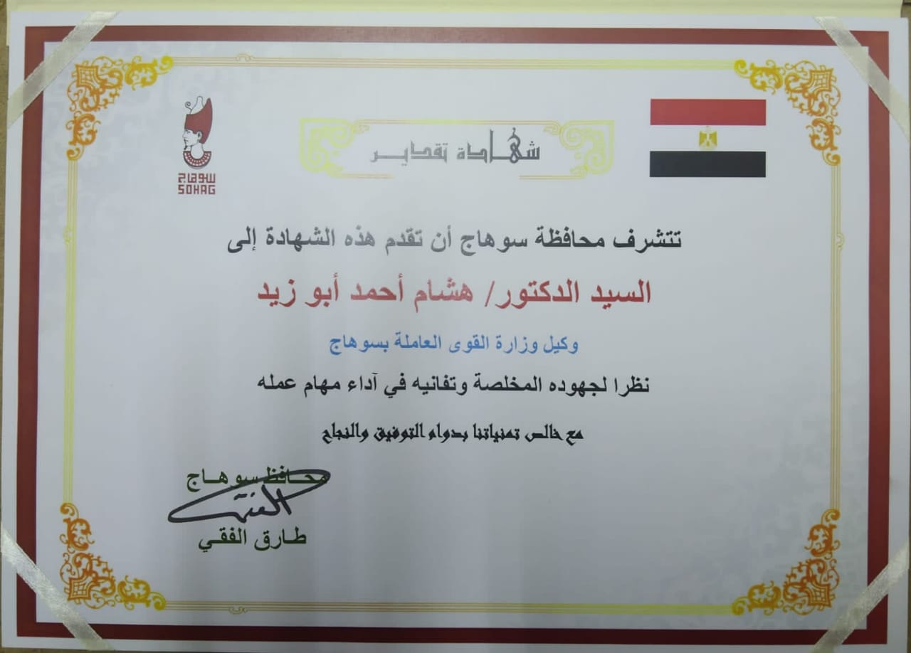 وقدم اللواء طارق الفقي محافظ سوهاج الشكر والتقدير لوزير القوي العاملة محمد سعفان على كافة مجهودات وبرامج عمل الوزارة بمحافظة سوهاج.