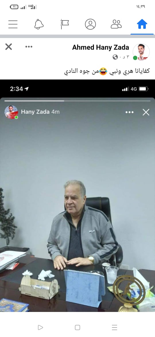 ونشر أحمد هاني زادة؛ صورة لوالده داخل النادي وفي مكتبه، وعلّق عبر صفحته على فيسبوك، قائلا: كفايانا هري والنبي من جوا النادي.
