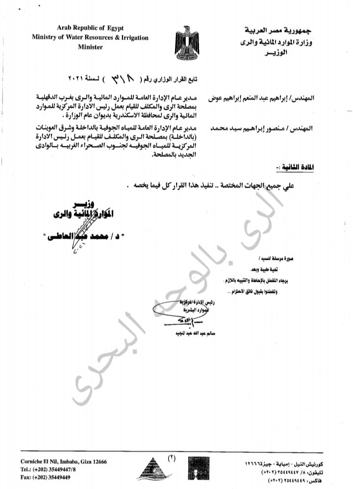 الري تنهي 2021 بتغيرات شاملة في قياداتها بمختلف المحافظات | أسماء